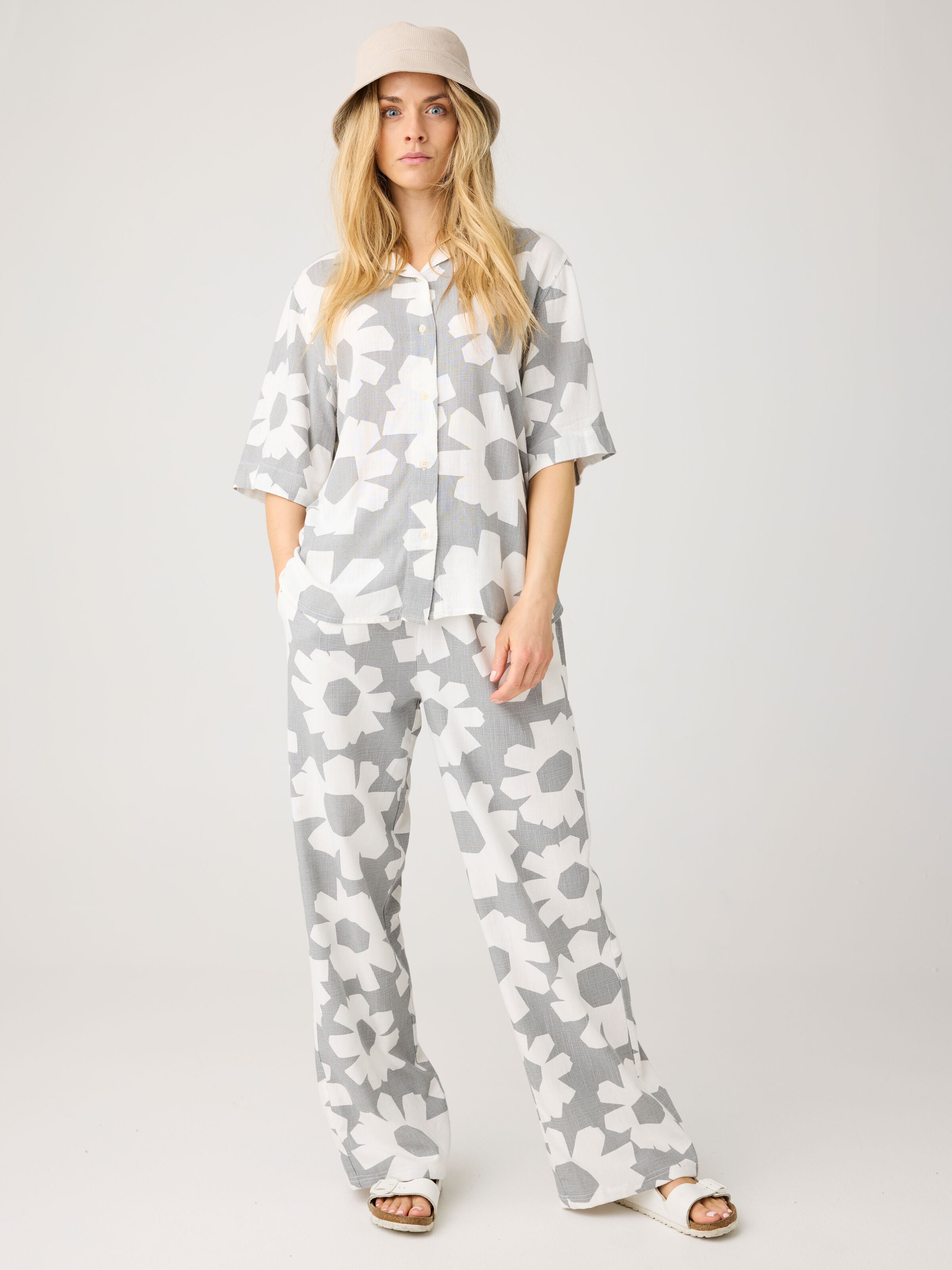 Diese Hose ist aus einer weichen Mischung aus Leinen und Lyocell gefertigt und bietet ein leichtes, atmungsaktives Tragegefühl mit glatter Textur. Der entspannte, gerade Schnitt sorgt für Komfort und mühelose Bewegung den ganzen Tag über. Der elastische Bund sorgt für ein einfaches Anziehen und eine flexible Passform, perfekt für entspannte Tage oder lässige Ausflüge. Mit ihrem auffälligen Allover-Muster ist diese Hose ein gewagter, aber bequemer Blickfang in jedem Kleiderschrank.
