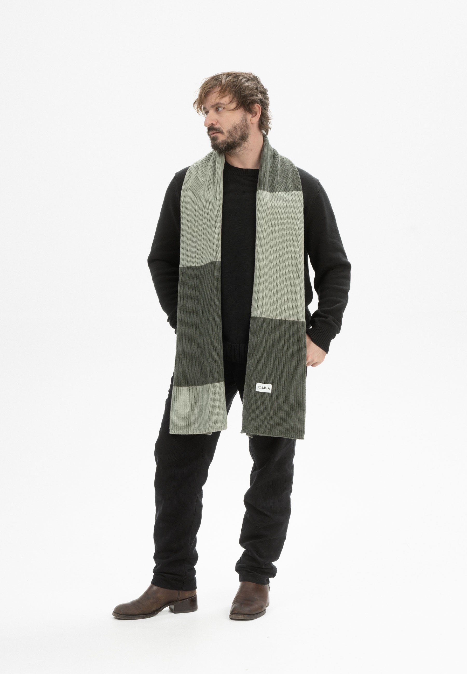 MELAWEAR Rippstrick Multicolor Schal Kazim grün melange / green clay gestreift