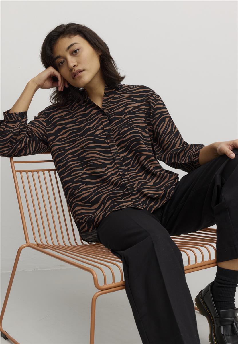 Bluse CYPRESS ZEBRA von RECOLUTION in cognac brown, bestehend aus: 100% Viskose (Lenzing™ EcoVero™)