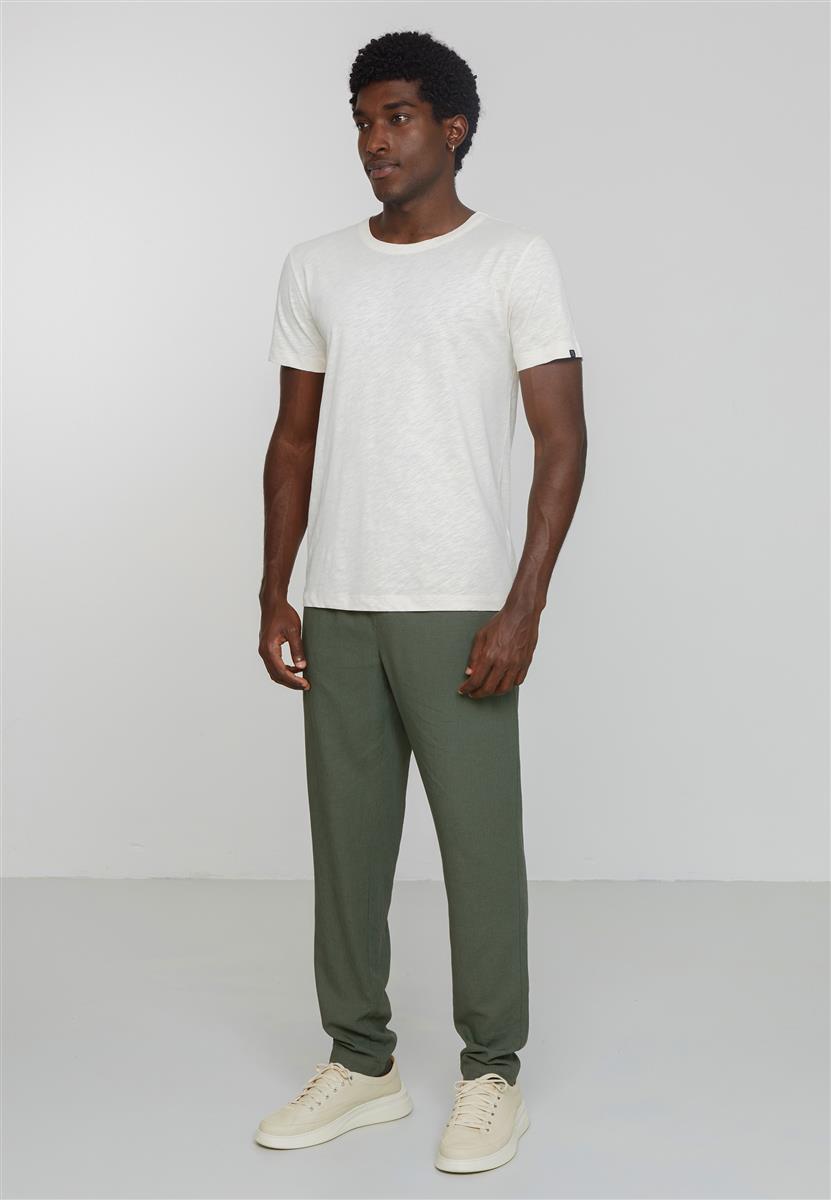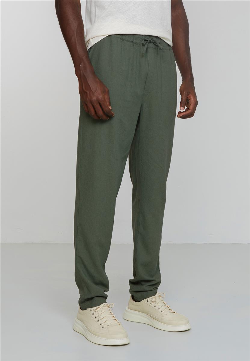Gefertigt aus 65 % LENZING™ ECOVERO™ Viskose und 35 % Leinen überzeugt die Hose durch ihre leichte, atmungsaktive Qualität und ein angenehm kühles Tragegefühl. Die Materialkombination verbindet fließenden Fall mit natürlicher Struktur.