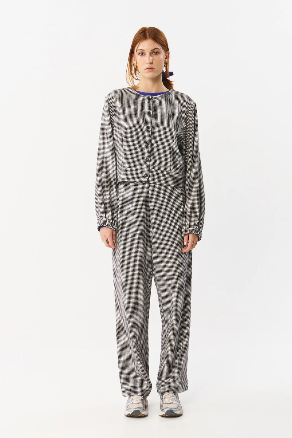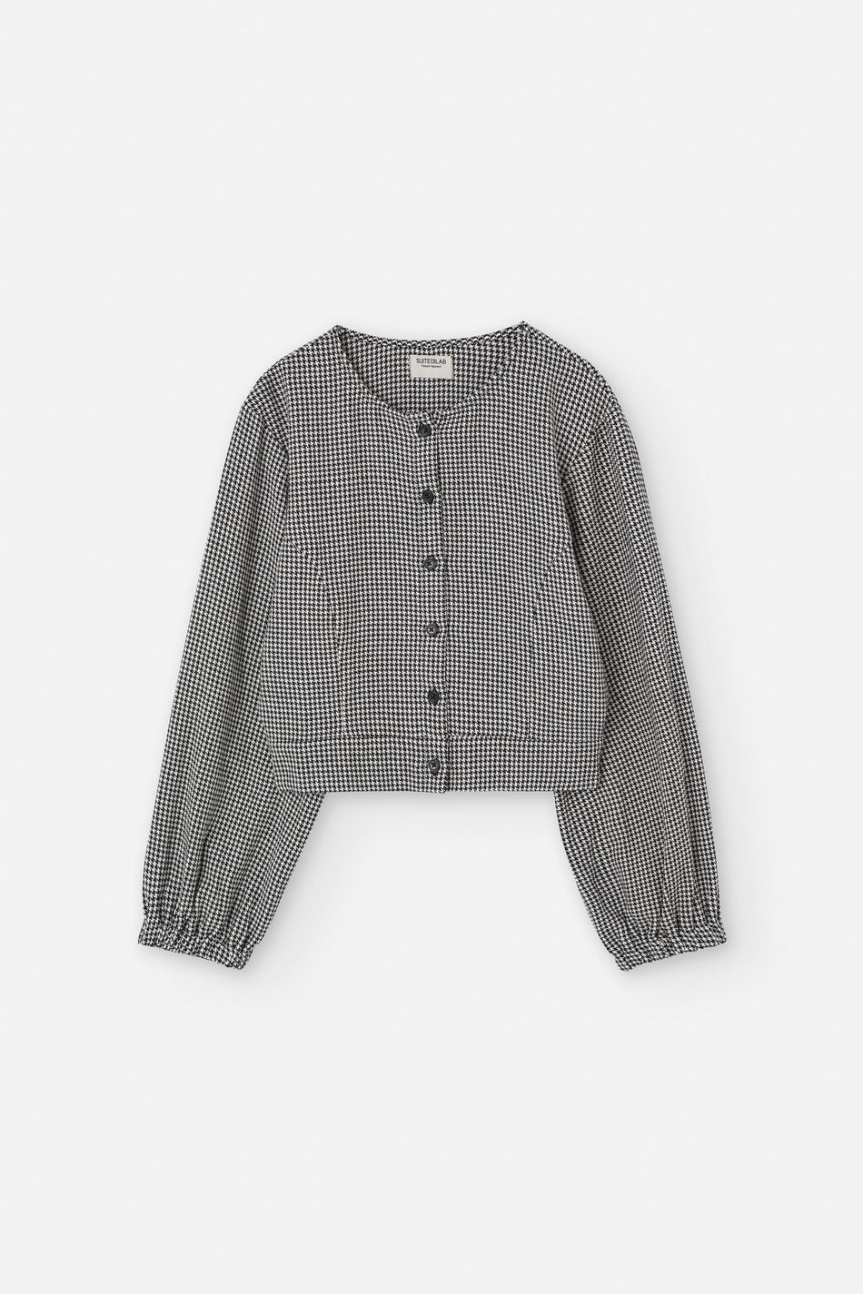 Die Rialto Bluse von SUITE 13 verbindet zeitlose Schnitte mit modernen Details und überzeugt durch ihre voluminösen Ballonärmel und den klassischen Rundhalsausschnitt, die der Bluse subtile Dramatik bei gleichzeitig klarer Silhouette verleihen. Sie ist aus 100% Bio-Baumwolle gefertigt und trägt ein zeitgemäßes Hahnentritt-Muster, das nachhaltigen Tragekomfort mit stilvoller Eleganz kombiniert. Die Frontknopfleiste ist mit natürlichen Corozo-Knöpfen versehen, die das An- und Ausziehen besonders einfach machen und der Bluse zusätzlichen Charakter verleihen.