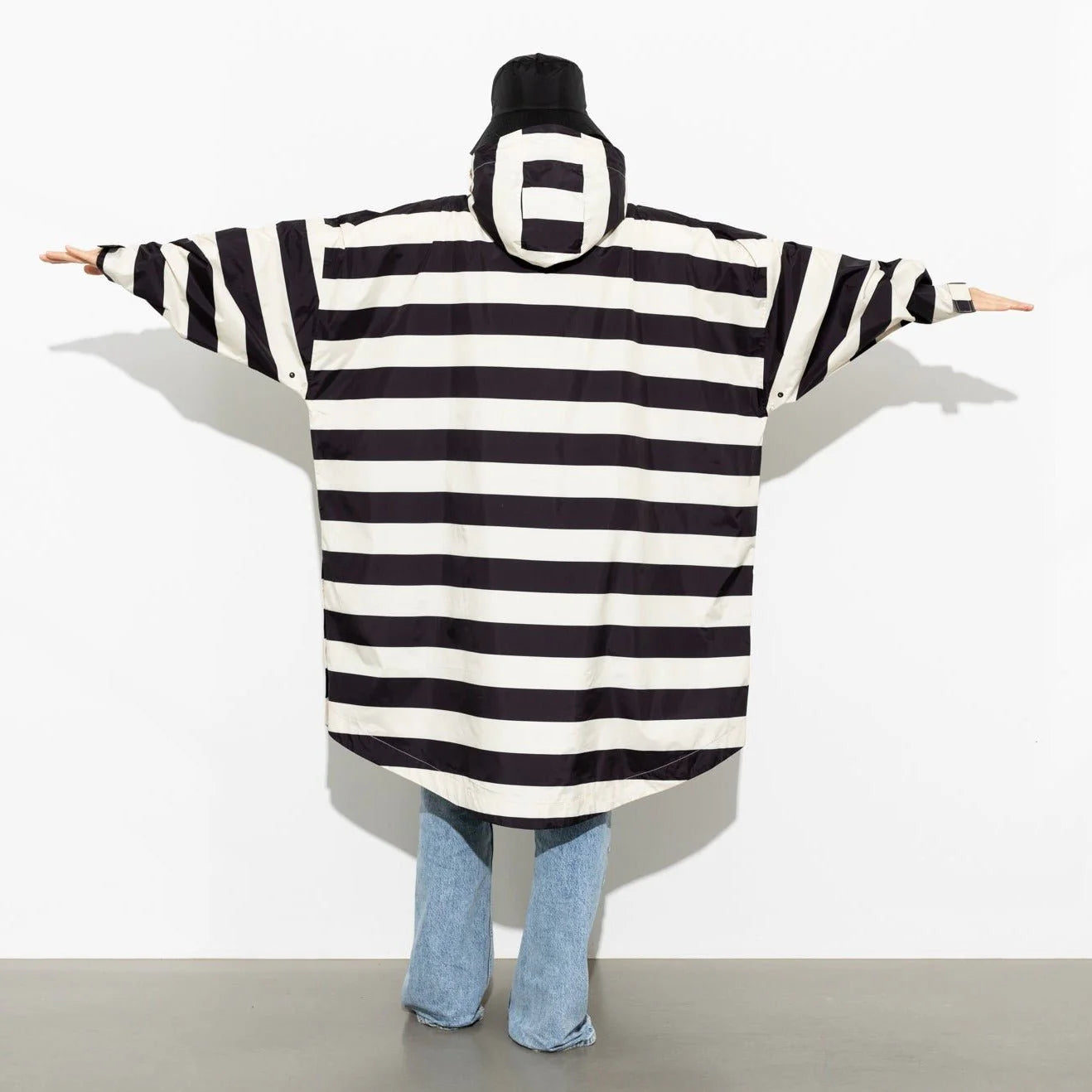 Den Raincoat gibt es nur in einer Einheitsgröße, das Model ist 173 cm groß.