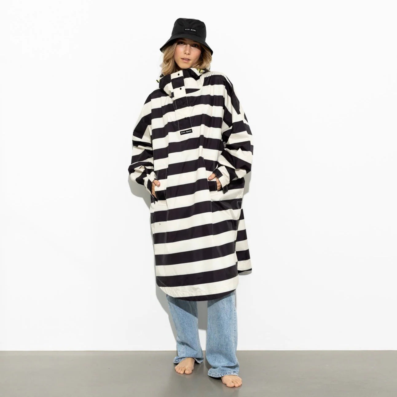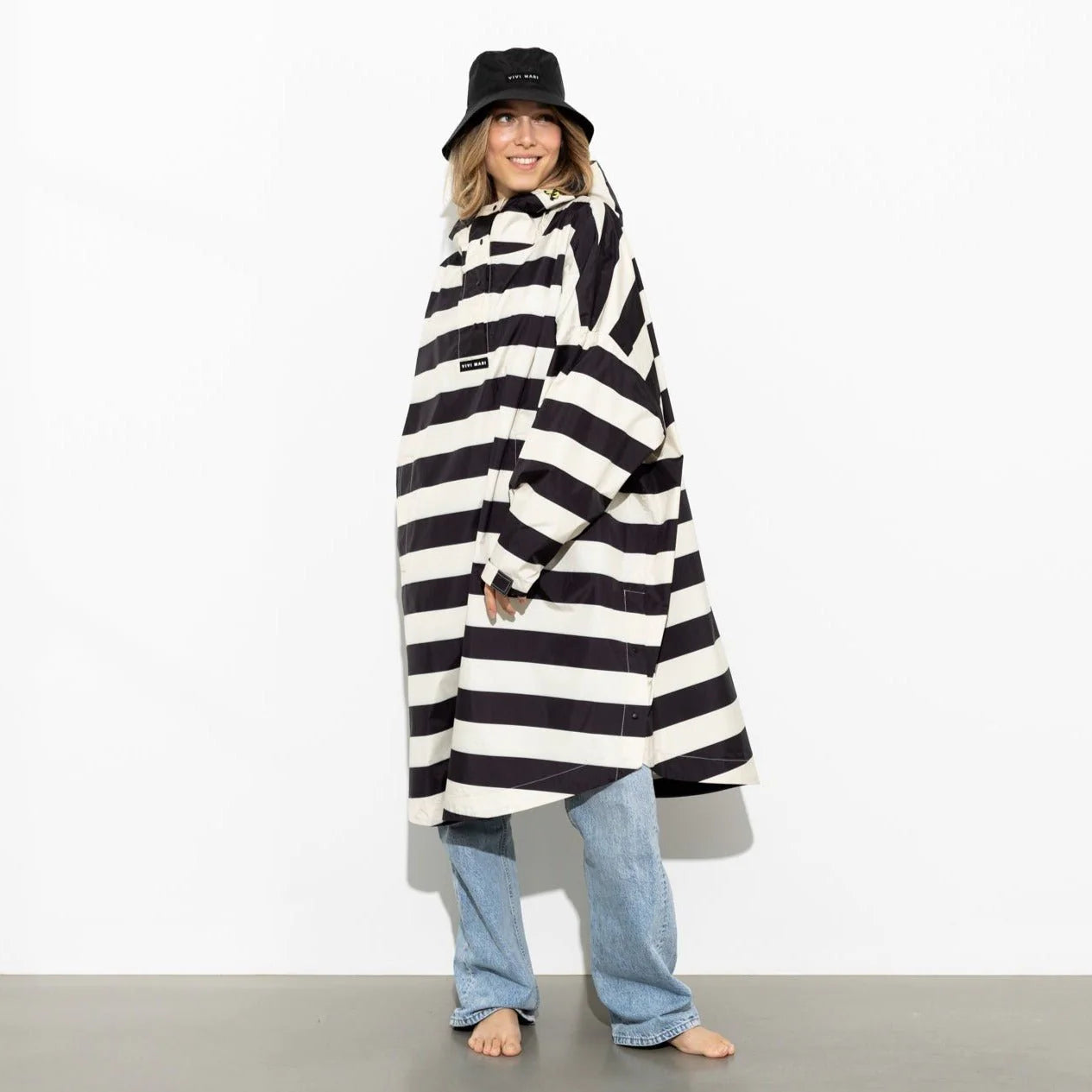 VIVI MARI Raincoat bold stripes - black/sand