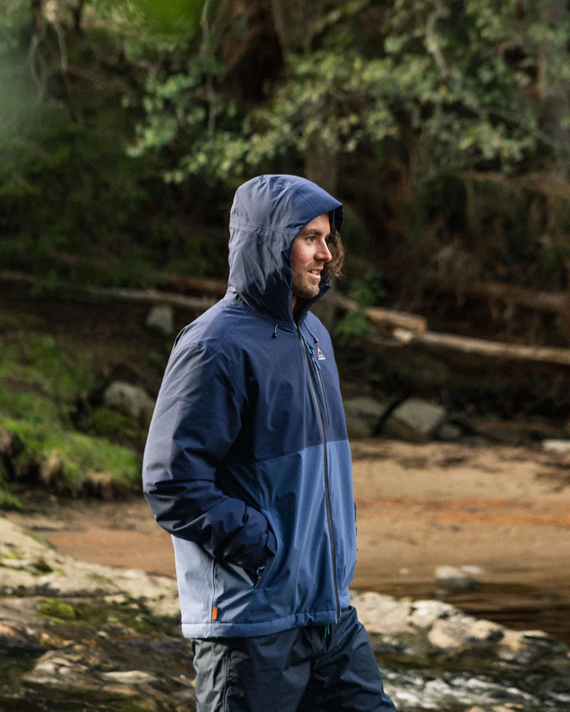 Passenger – Eclipse Insulated Waterproof Jacket (Rich Navy) Wasserdichte, isolierte Outdoor-Jacke aus 100 % recyceltem Polyester für zuverlässigen Schutz bei jedem Wetter. Mit vollständig verschweißten Nähten, Kapuze, Reißverschluss- und Eingrifftaschen sowie verstellbaren Ärmelabschlüssen. Technisches Material – ideal für Regen, Wind und kalte Temperaturen.