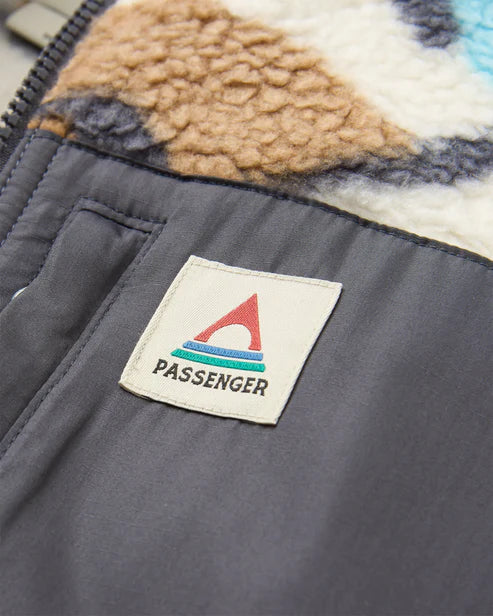 PASSENGER Fairbanks 2.0 Full Zip Recycled Sherpa Fleece abstract trails off white