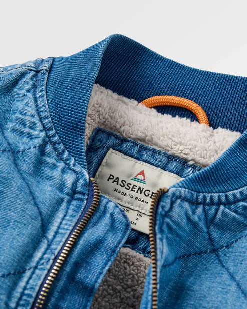 PASSENGER Lucia Denim Sherpa Lined Bomber Jacket denim blue