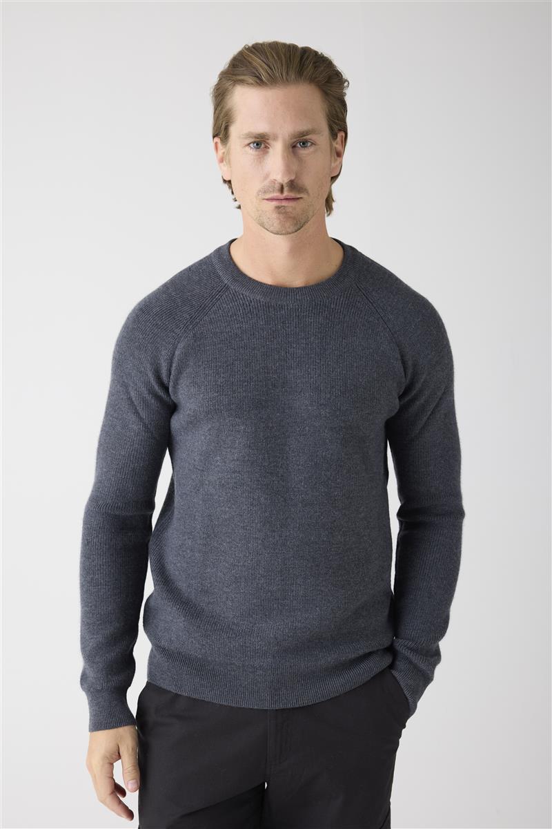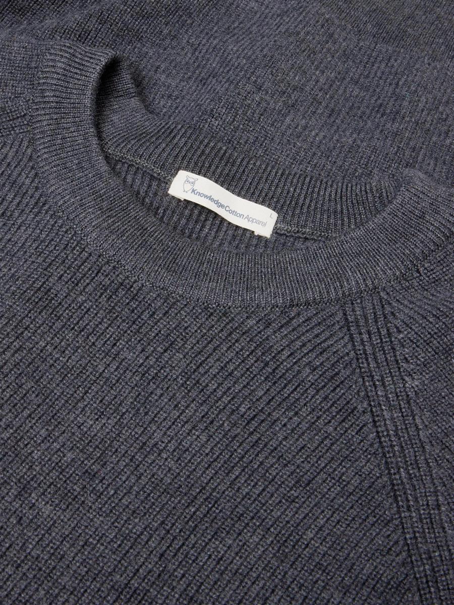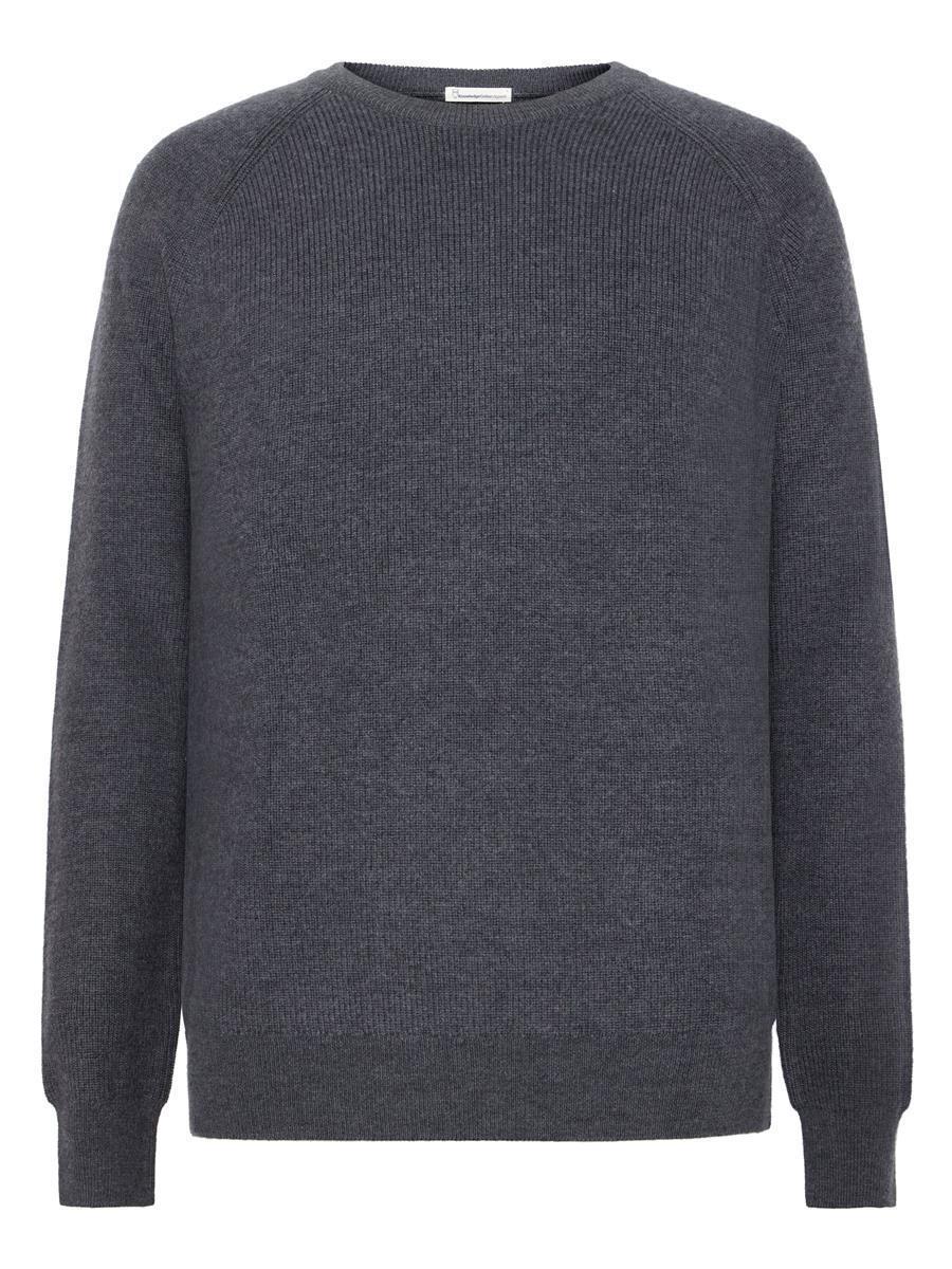 KNOWLEDGE COTTON APPAREL Merino Wool Crew Neck Knit Rws dark grey melange