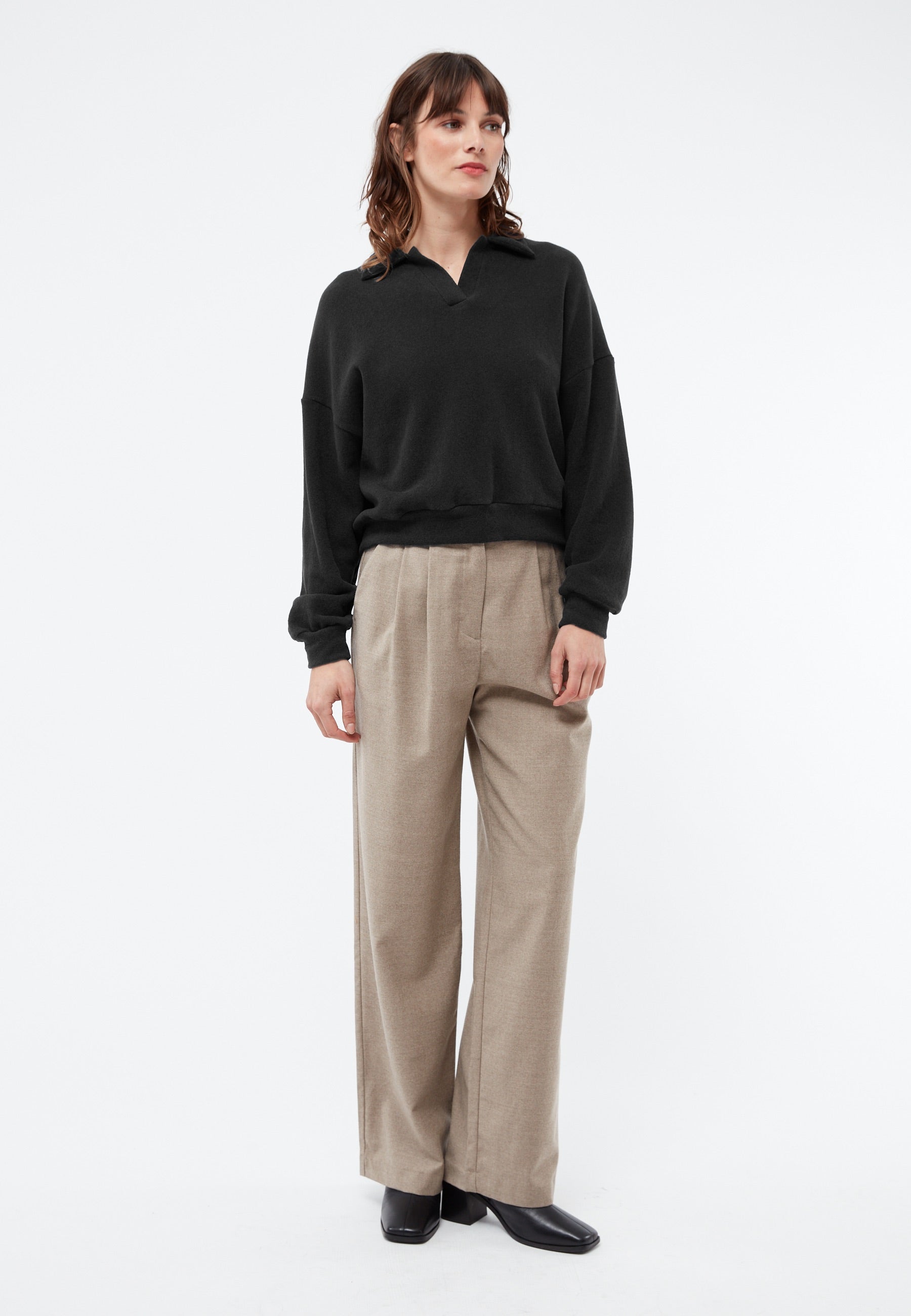 Sweater Resa von Givn Berlin in dark grey, hergestellt aus 78% recycelte Baumwolle und 20% Polyacryl und 2% Elastane.