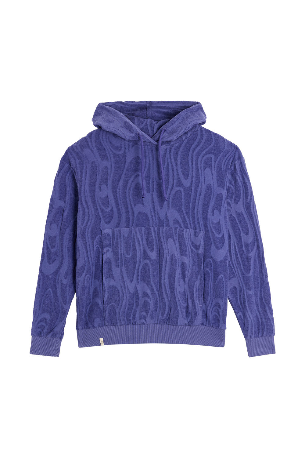 Der Hoodie Flânerie von Graine überzeugt mit einer weichen, raffinierten Jacquard-Frottee-Qualität und einem entspannten Look. Die leicht lockere Passform, eine verstellbare Kapuze mit Kordeln sowie die klassische Kängurutasche sorgen für hohen Tragekomfort im Alltag. Die Farbe Bleu Lavande verleiht dem Hoodie eine frische, sommerliche Note.