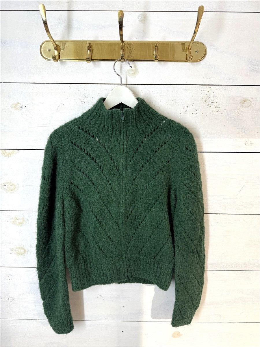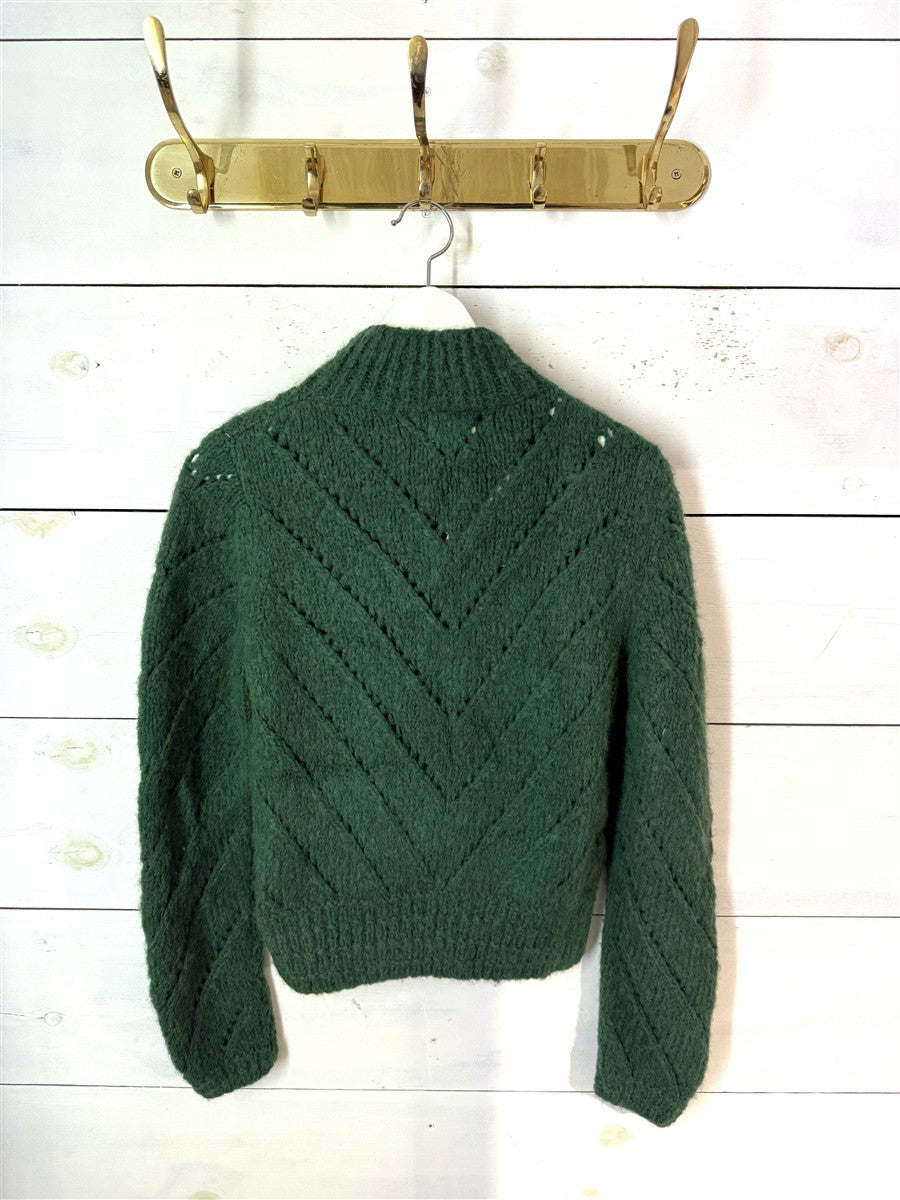 Der handgestrickte Delfina Cardigan von INTI überzeugt mit einem eleganten Zickzack-Muster. Gefertigt aus feiner Baby-Alpakawolle, bietet er weichen, wärmenden Tragekomfort und eine luxuriöse Haptik.