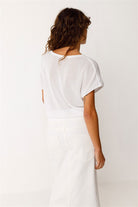 T-Shirt Zelia von SKFK in white, hergestellt aus 100% Baumwolle (Bio). Leichtes, strukturiertes Stricktop mit Rundhalsausschnitt. Mit überschnittenen Schultern und geripptem Saum.