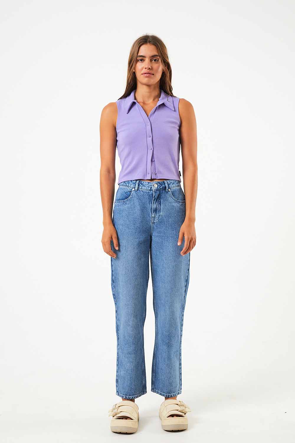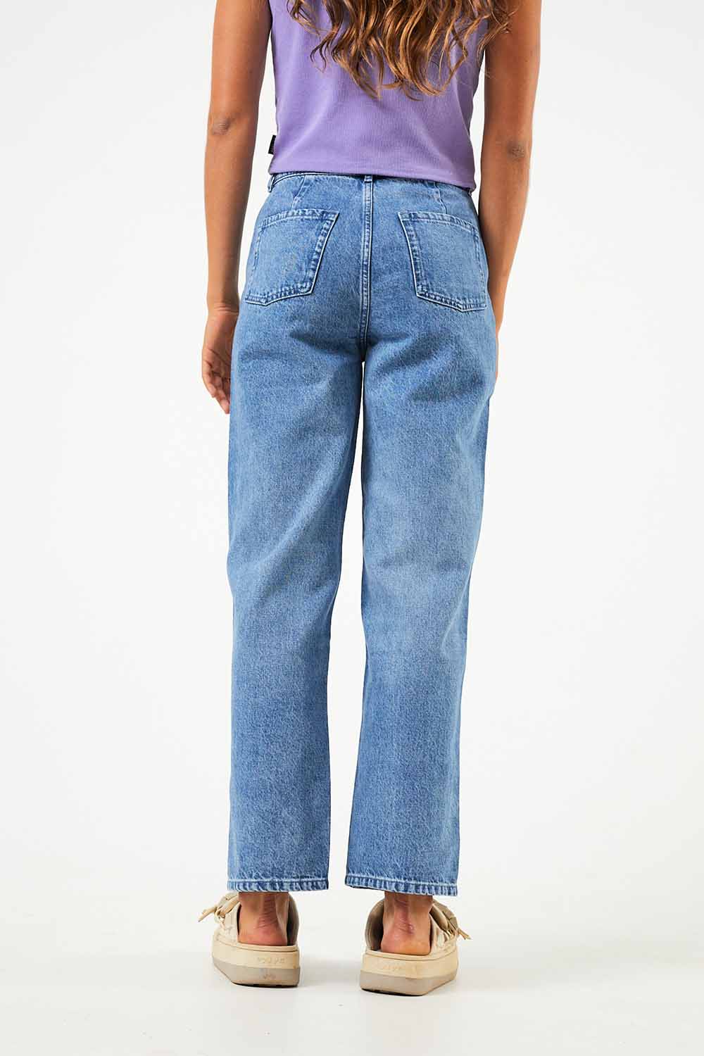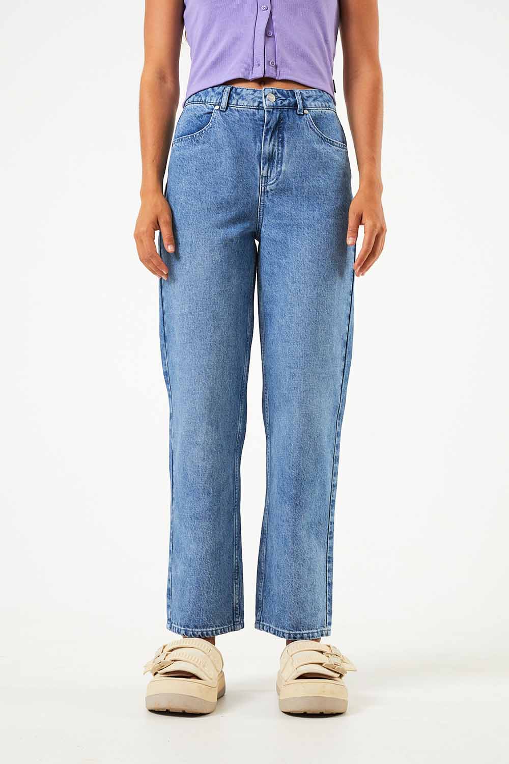 Die Jeans Shelby von Afends ist high-waist geschnitten und hat ein gerades, schmales Bein. Die Hose hat ganz klassisch zwei Gesäß- und zwei Seitentaschen und wird mit Knopf und Reißverschluss geschlossen. Sie besteht aus 80% Baumwolle (bio) und 20% Hanf.