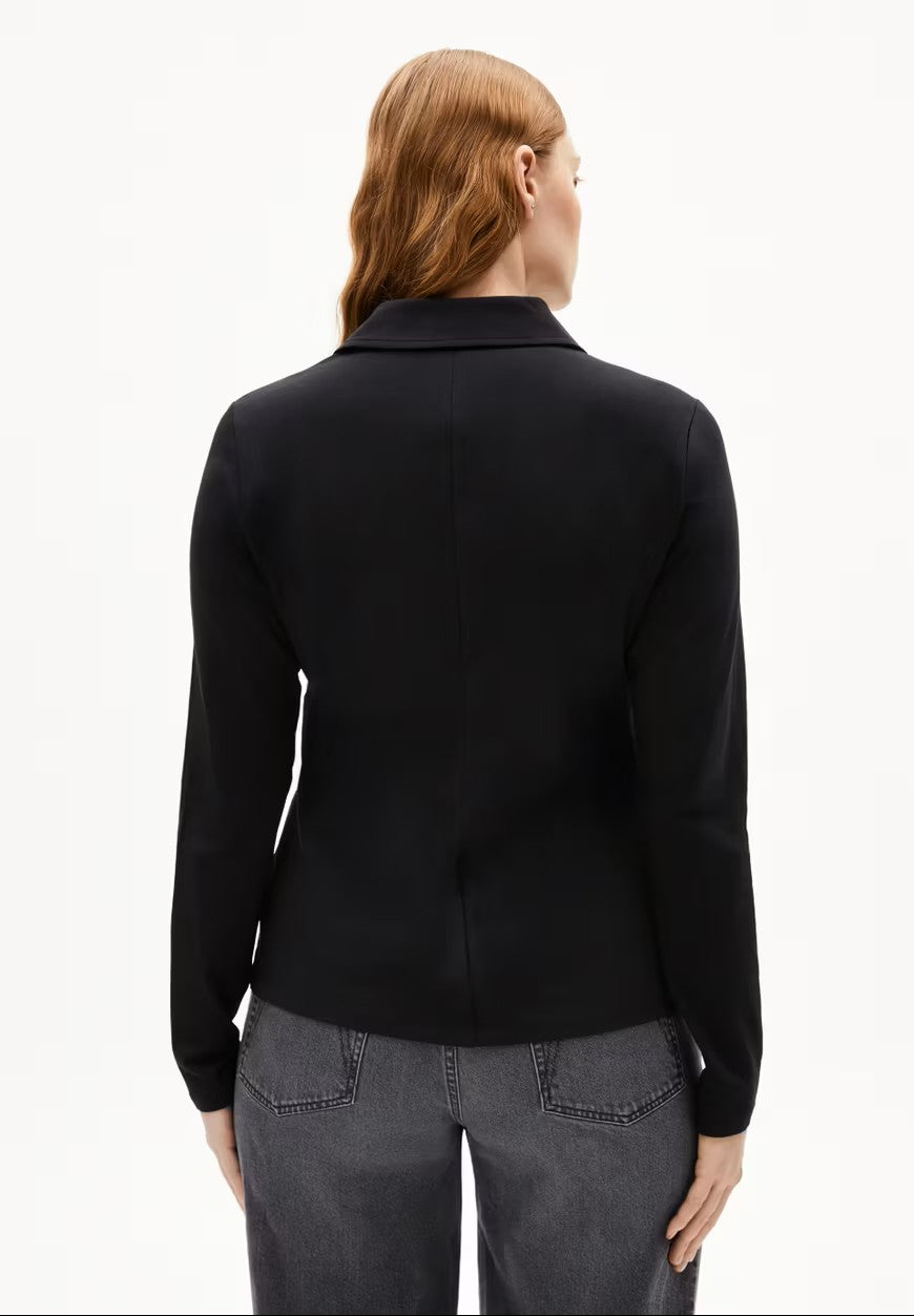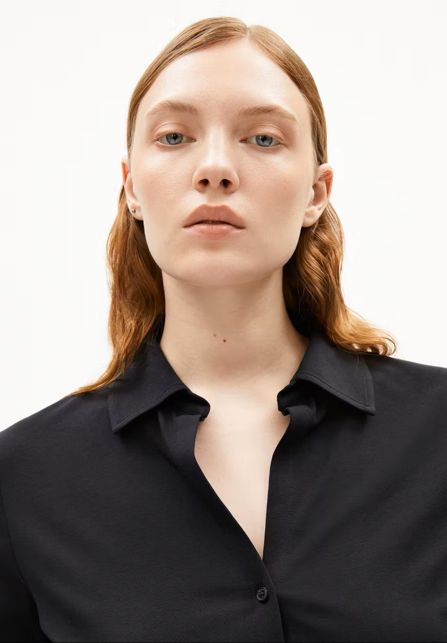 Diese Bluse NALAANNIA von Armedangels besteht aus 96% Bio-Baumwolle und 4% Elasthan und bietet dadurch eine angenehme Mischung aus Komfort und Bewegungsfreiheit. Der Slim Fit betont die Figur, während der klassische Hemdkragen und das einfarbige Design für einen zeitlosen Look sorgen. Die Knopfleiste rundet den Stil ab. Langärmlig, mit normaler Schulterverarbeitung und einer Länge von ca. 65 cm. Gefertigt aus mittelschwerem Jersey. Pflegeleicht bei 30° waschbar, schonend mit Perchlorethylen reinigen, nicht trocknergeeignet, nicht heiß bügeln und nicht bleichen.