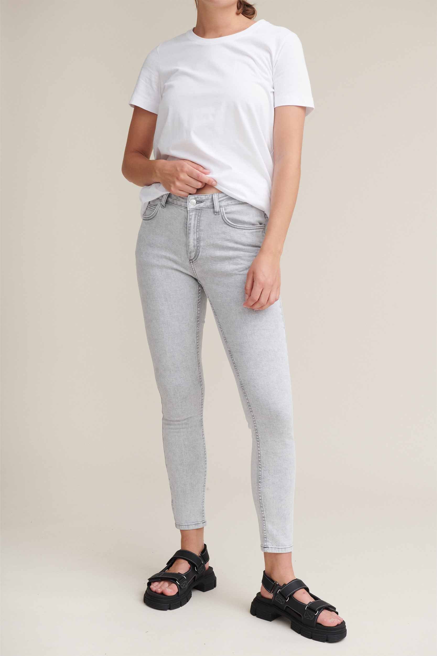 Eve von Basic Apparel ist eine Skinny Jeans, die mid waist geschnitten ist. Die Hose besteht aus 98% Baumwolle (bio) und 2% Elasthan.