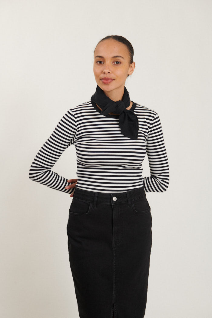 BASIC APPAREL Ludmilla Ls Tee whisper white/ black/ black trim