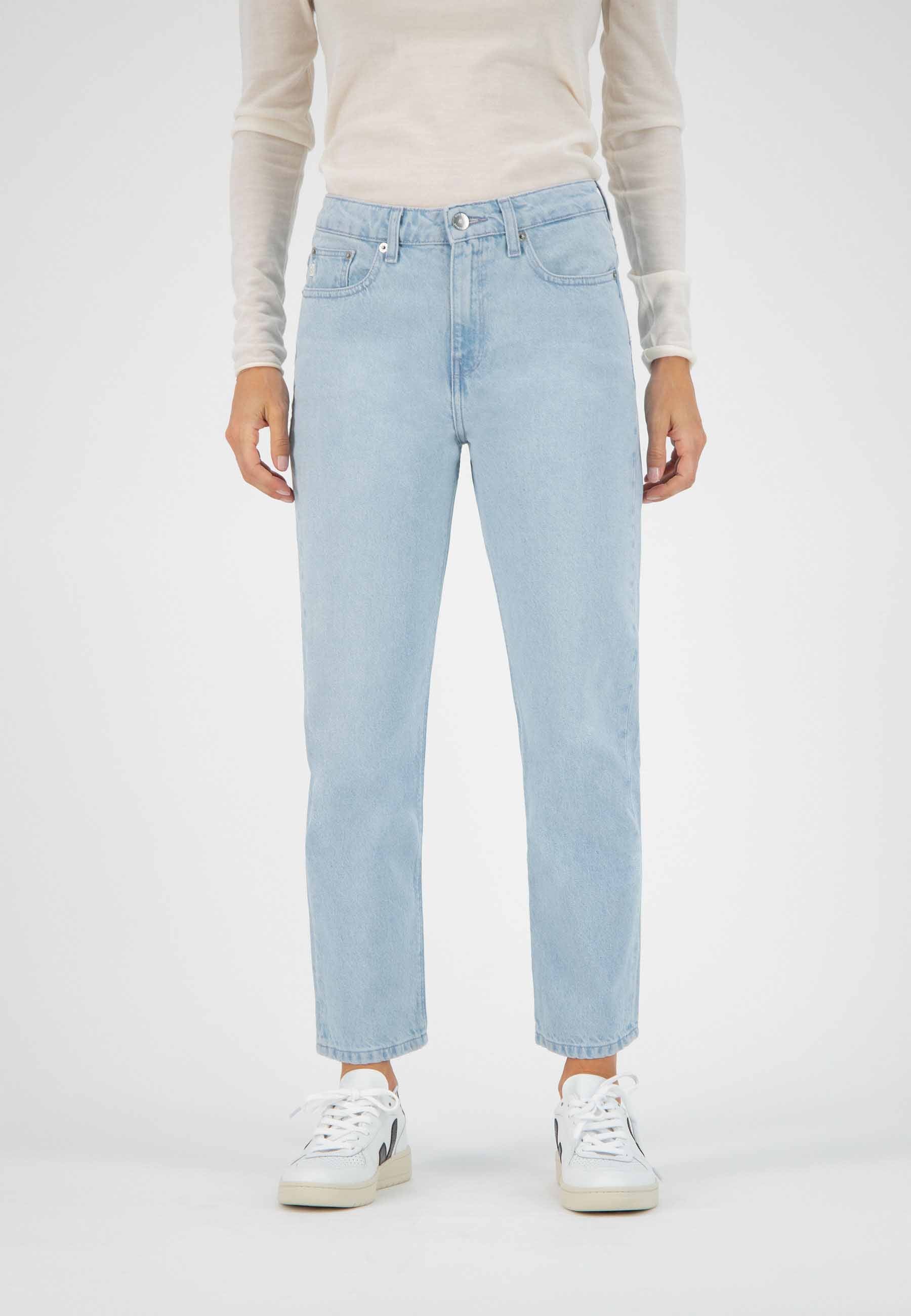 Cropped Mimi von MUD hat einen mittelhohen Bund und ein gerades Bein. Die 5-Pocket Jeans besteht aus 60% Baumwolle (bio) und 40% Baumwolle (recycelt).
