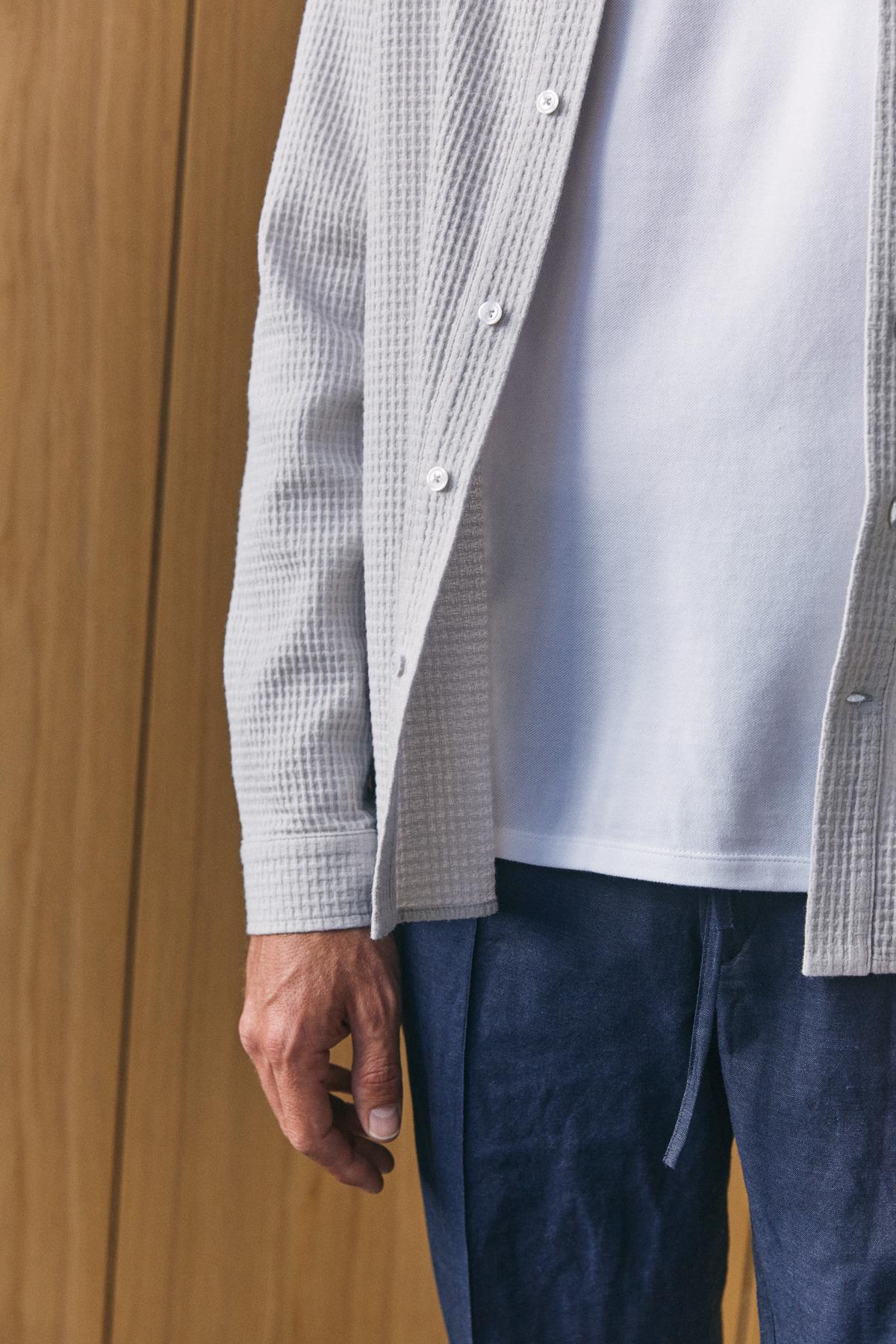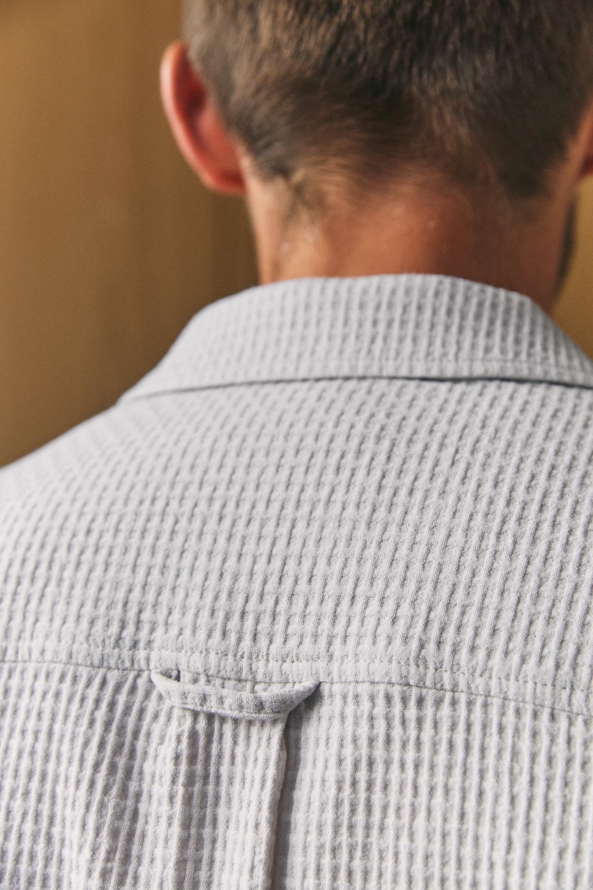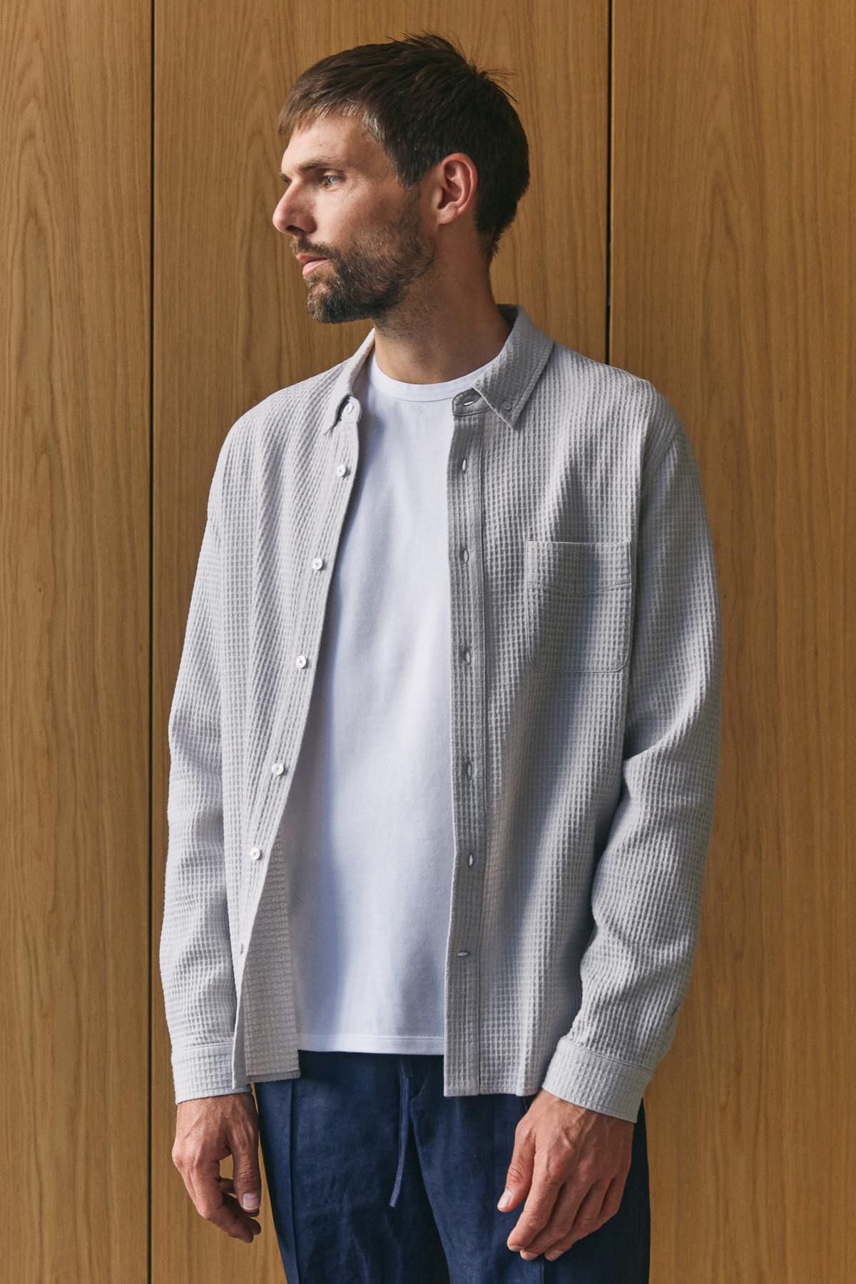 Das Hemd Ken von About Companions hat einen klassischen Schnitt und überzeugt durch die besondere Waffelstruktur im Stoff. Das Hemd weist klassische Details wie eine Brusttasche, vegane Knöpfe und eine Bewegungsfalte am Rück auf. Der Stoff wurde in der Produktion vorgewaschen, um ein Einlaufen zu vermeiden.