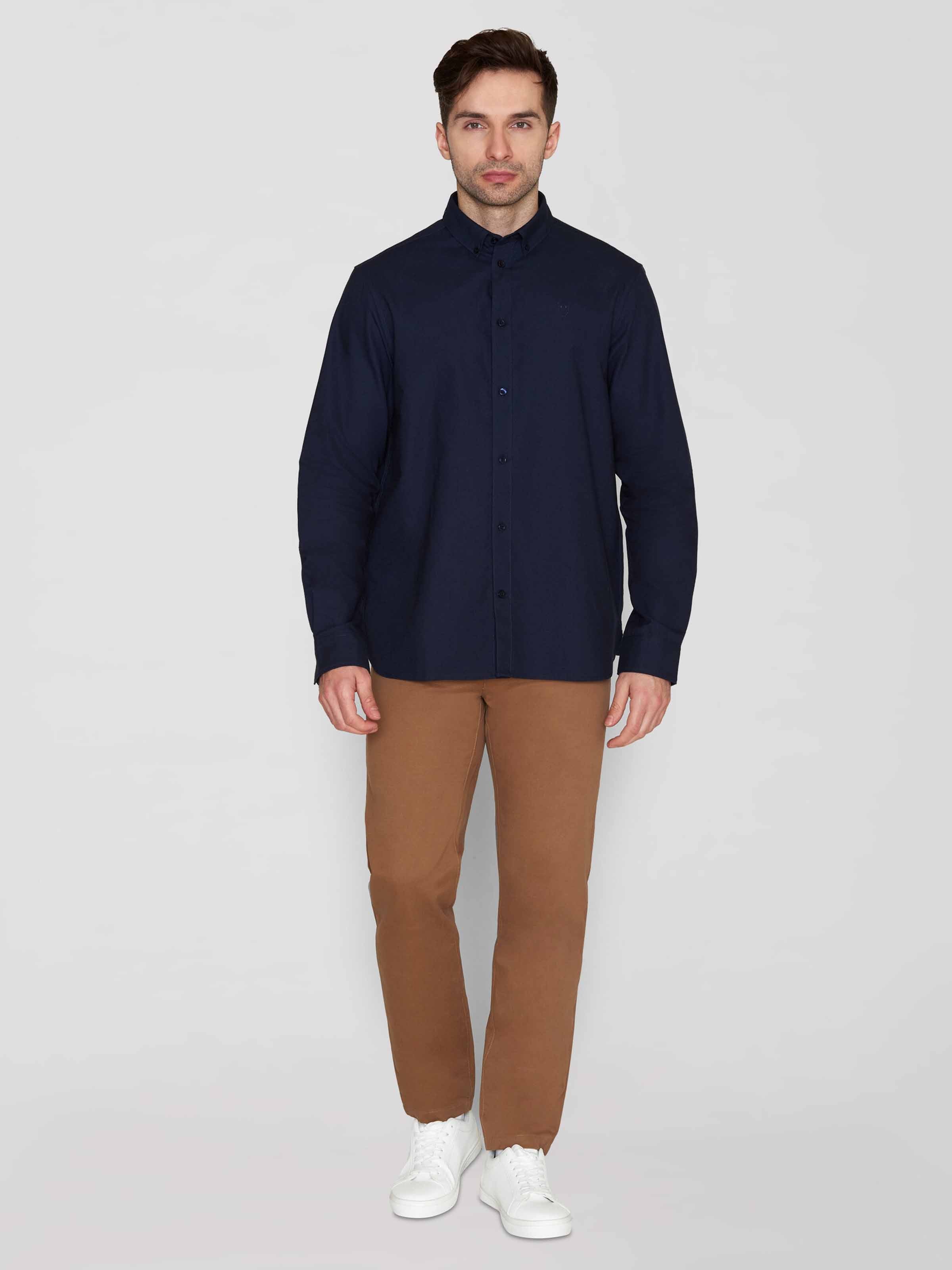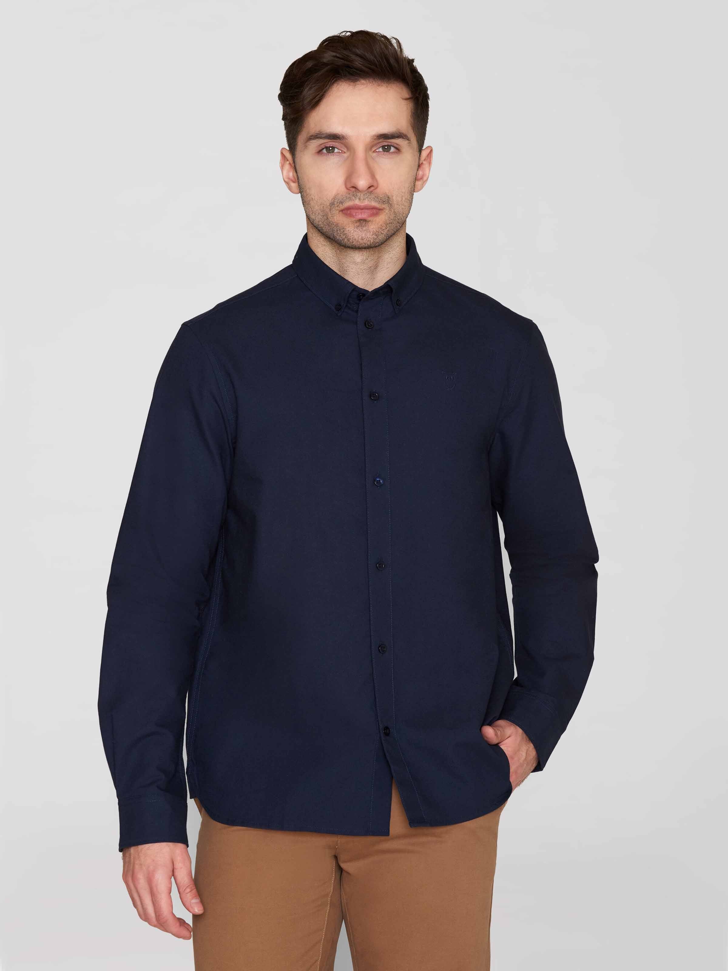 KNOWLEDGE COTTON APPAREL Harald Small Owl Oxford Regular Fit Shirt total eclipse