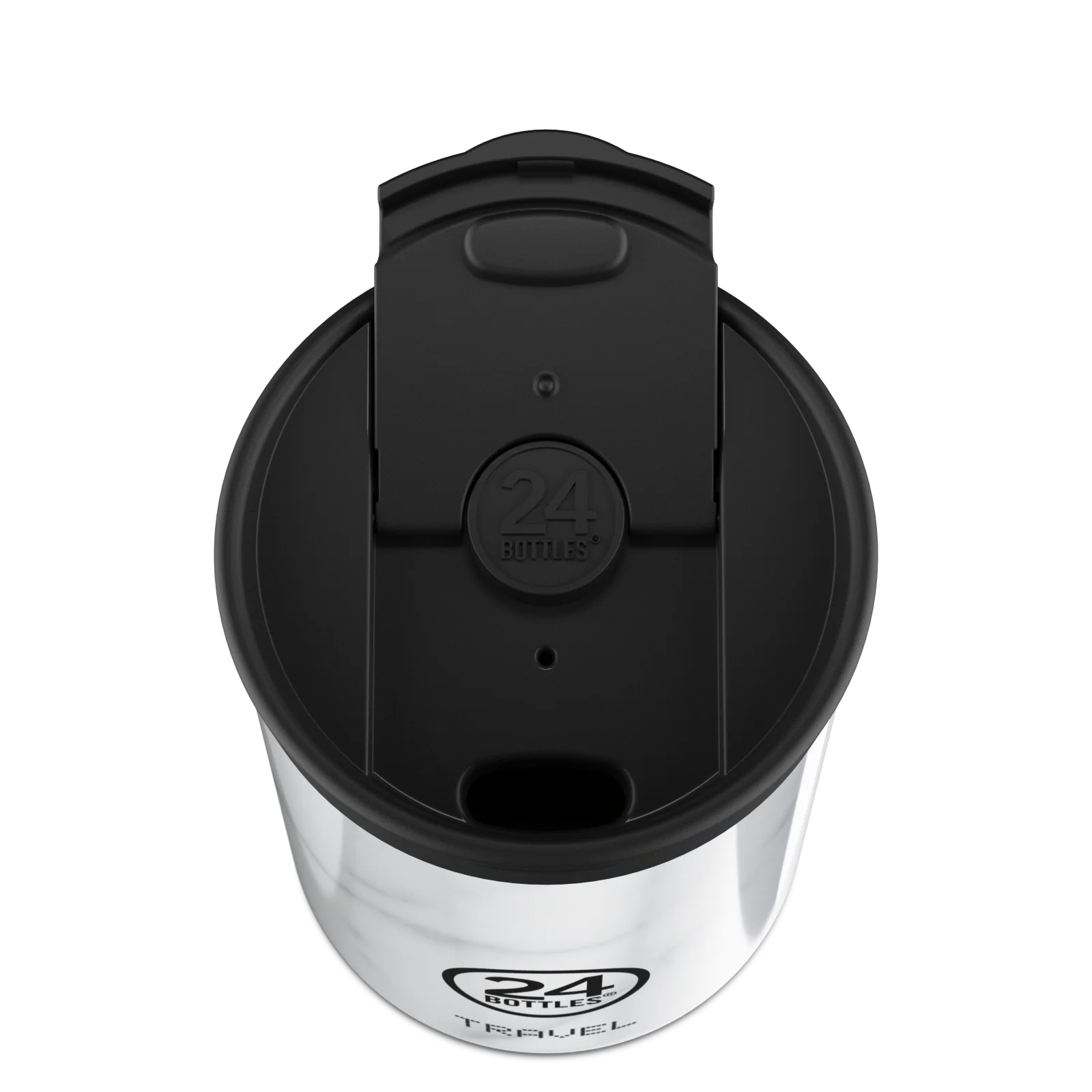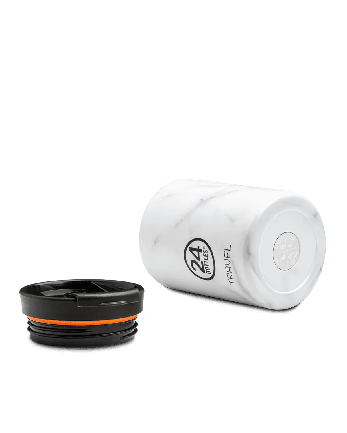 Der Travel Tumbler von 24 Bottles hat eine doppelte isolierte Wand aus Edelstahl, die dafür sorgt, dass Dein Getränk 6 Stunden warm bleibt bzw. 24 Stunden kalt. Die äußere Wand der Flasche behält dabei immer Raumtemperatur, egal ob Dein Getränk innen eiskalt oder heiß ist. Alle 24 Bottles sind CO2 neutral hergestellt. Der Thermo- Becher hat ein Fassungsvermögen von 350 ml, ist 12,5 cm hoch, hat einen Durchmesser von 8 cm und einen Sip & Go auslaufsicherer Deckel.