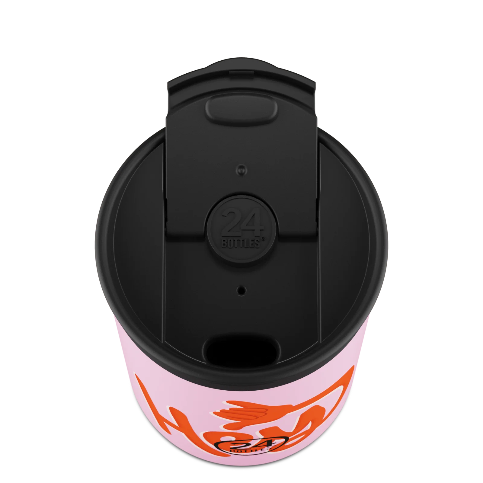 Der Travel Tumbler von 24 Bottles hat eine doppelte isolierte Wand aus Edelstahl, die dafür sorgt, dass Dein Getränk 6 Stunden warm bleibt bzw. 24 Stunden kalt. Die äußere Wand der Flasche behält dabei immer Raumtemperatur, egal ob Dein Getränk innen eiskalt oder heiß ist. Alle 24 Bottles sind CO2 neutral hergestellt. Der Thermo-Becher hat ein Fassungsvermögen von 350ml, ist 12,5cm hoch, hat einen Durchmesser von 8cm und einen Sip & Go auslaufsicherer Deckel.