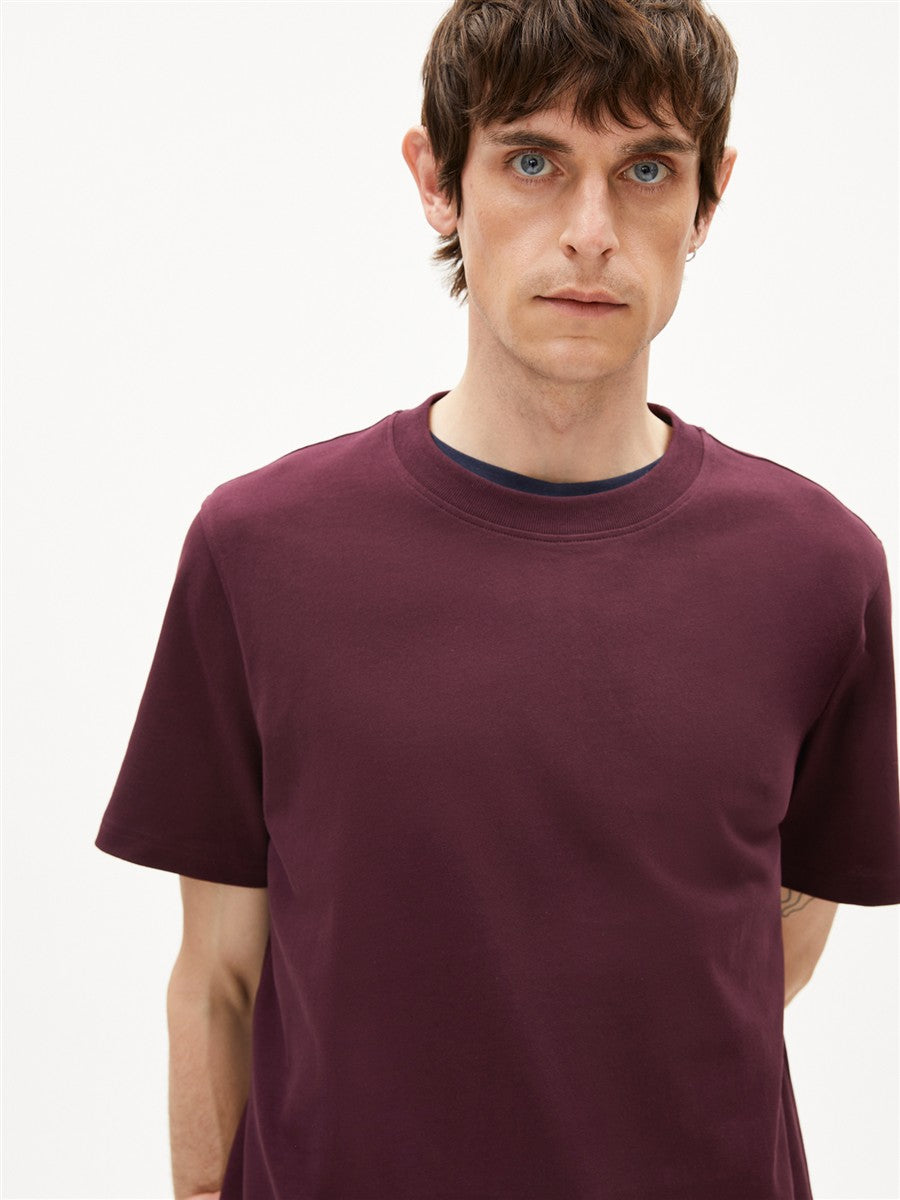 T-Shirt Maarkos von ARMEDANGELS in dark cranberry aus 50% Baumwolle (bio), 50% Baumwolle (recycelt).