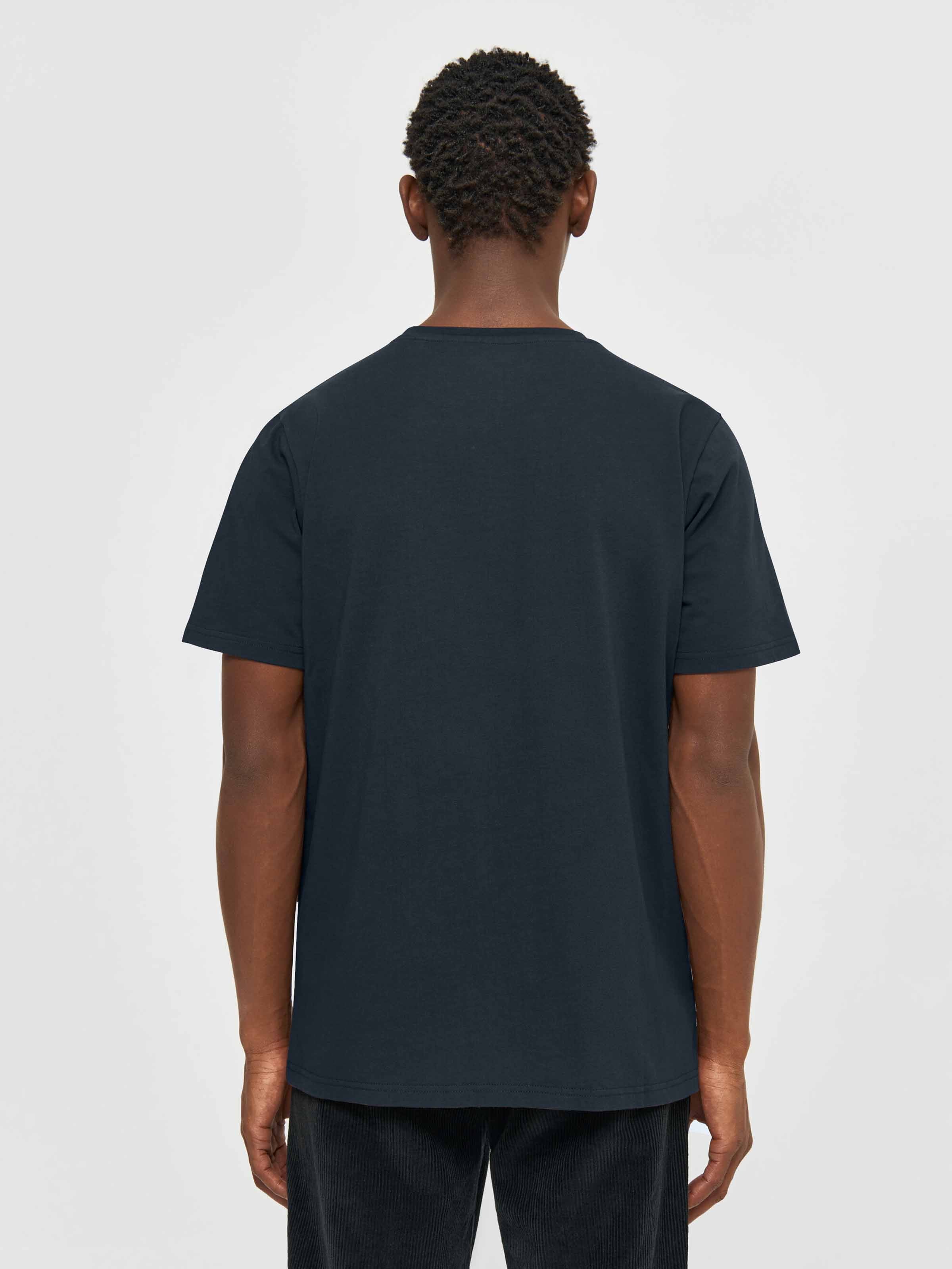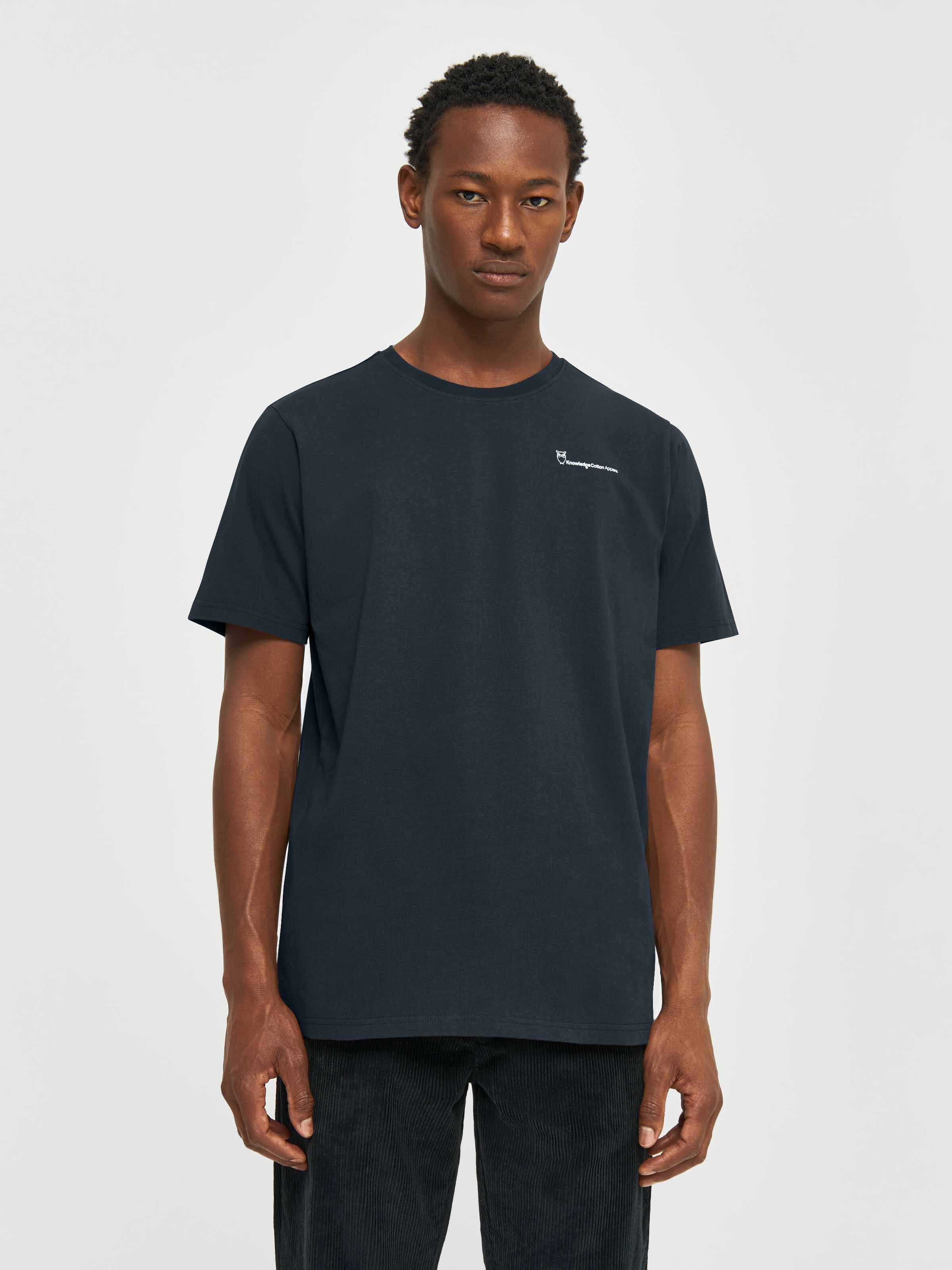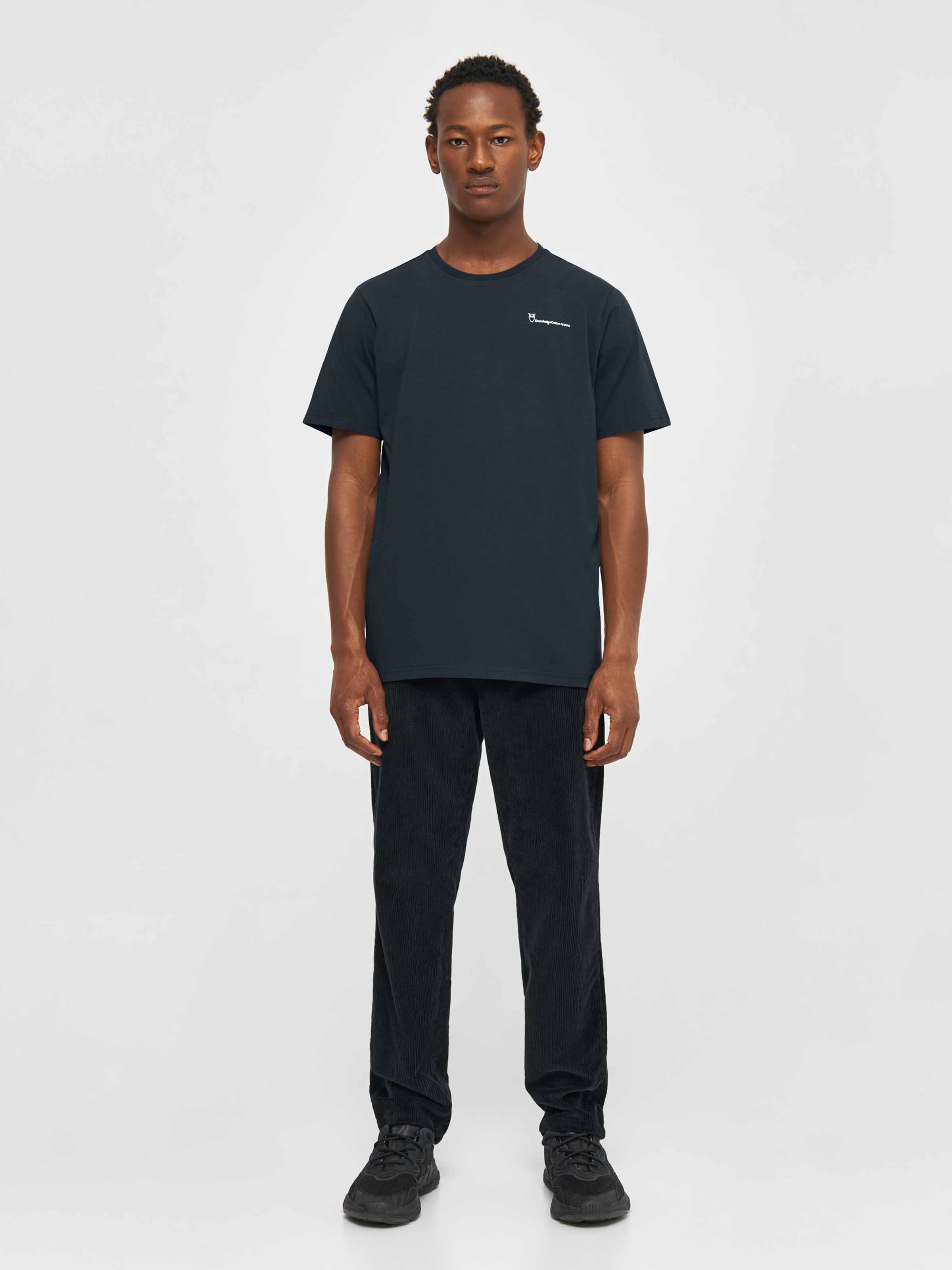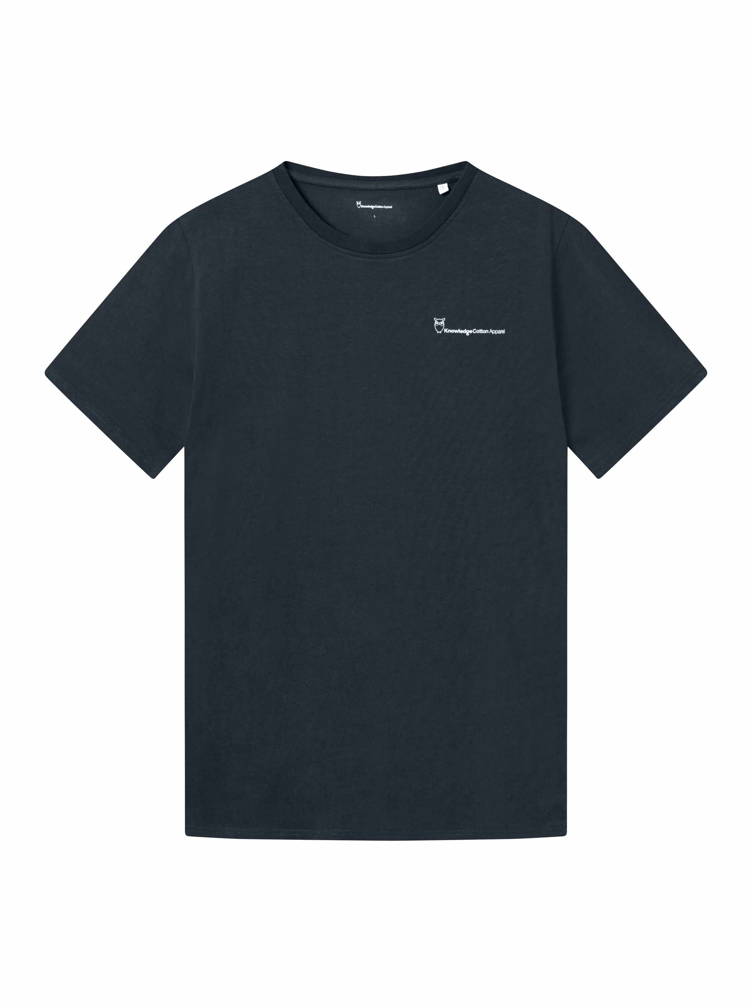 Das Basic T-Shirt von Knowledge Cotton Apparel ist regulär geschnitten, hat einen Rundhalsausschnitt und einen kleinen Logo-Print auf der Brust. Das Shirt besteht aus 100% Baumwolle (bio).