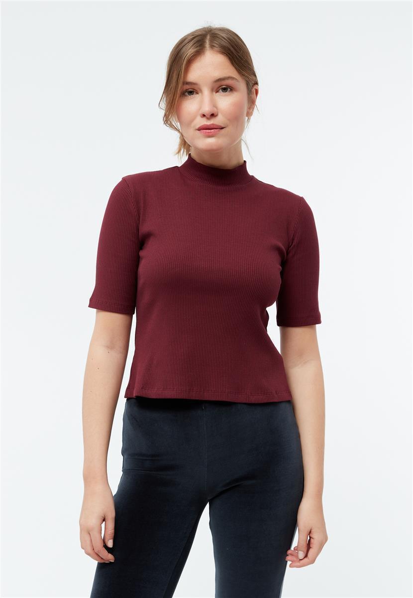 T-Shirt Ginetta von Givn Berlin in burgundy (rib), hergestellt aus 96% Baumwolle (Bio) und 4% Elastane.