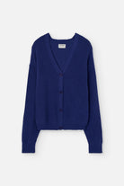 Strickcardigan mit V-Ausschnitt und langen Ärmeln, vorne geschlossen mit Knöpfen aus Corozo-Nuss. Loa von SUITE 13 gefertigt aus 100% Baumwolle (Bio).