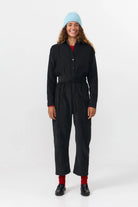 Jumpsuit aus feinem Cord mit Kragen und langen Ärmeln, vorne geschlossen mit Knöpfen aus Corozo-Nuss und abnehmbarem Gürtel. Massy von SUITE 13 gefertigt aus 100% Baumwolle (Bio).