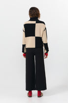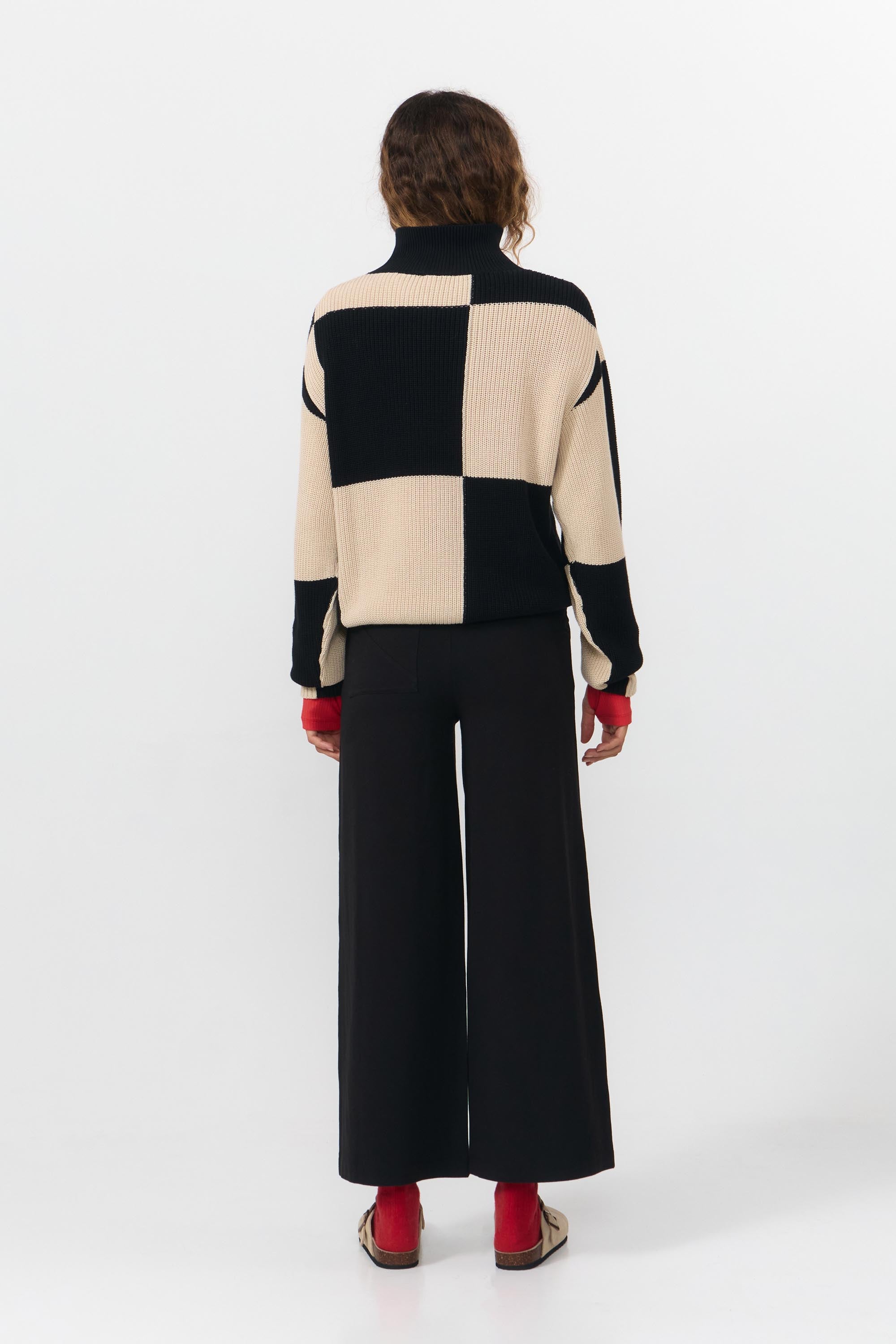 Karierter Strickpullover mit hohem Kragen und langen Ärmeln. Shira von SUITE 13 gefertigt aus 100% Baumwolle (Bio).