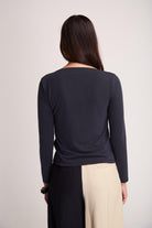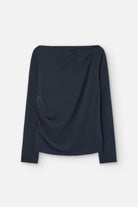Langarm-Shirt mit körpernahen Schnitt und einem asymetrisch drapierten Ausschnitt. Teide von SUITE 13 gefertigt aus 49% TENCEL™ Modal, 43% PES und 8% Elasthan.