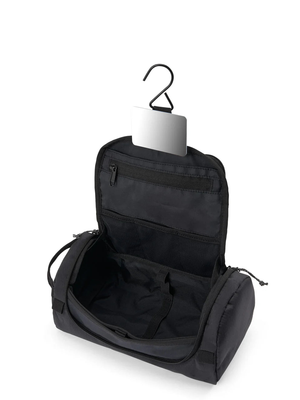 Der AEVOR Wash Pack ist ein 3,5 l Kulturbeutel aus wasserabweisendem Material (5.000 mm Wassersäule). Mit YKK Zwei-Wege-Reißverschluss, integriertem Spiegel, herausnehmbarem Duschbeutel, Handtuchhalterung und organisiertem Innenfach ist er ideal für Reisen und unterwegs. Maße: 36 × 14 × 13 cm, Gewicht: 220 g.