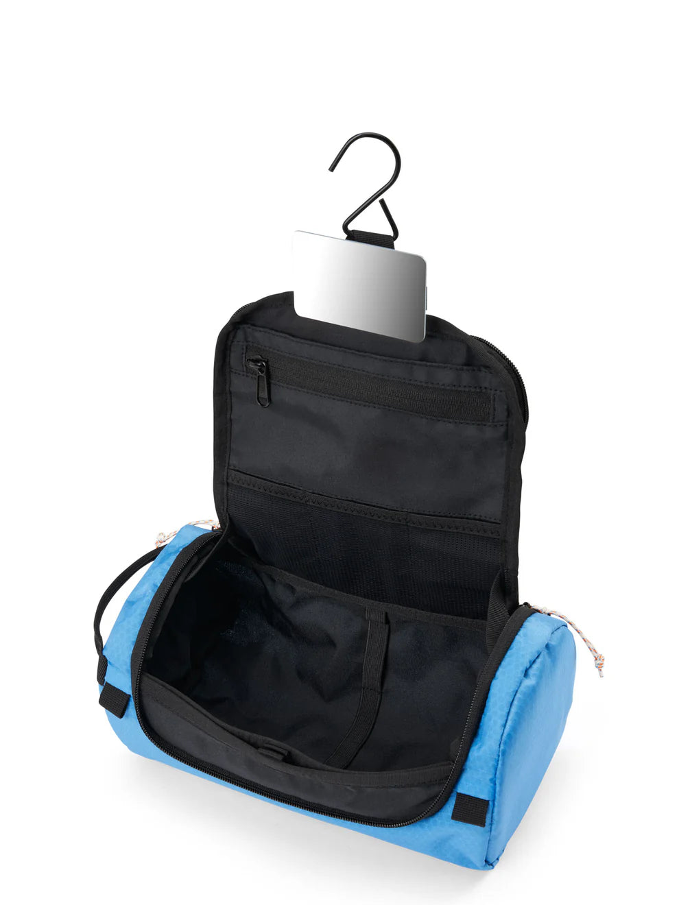 Der AEVOR Wash Pack ist ein 3,5 l Kulturbeutel aus wasserabweisendem Material (5.000 mm Wassersäule). Mit YKK Zwei-Wege-Reißverschluss, integriertem Spiegel, herausnehmbarem Duschbeutel, Handtuchhalterung und organisiertem Innenfach ist er ideal für Reisen und unterwegs. Maße: 36 × 14 × 13 cm, Gewicht: 220 g.