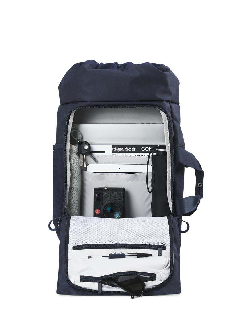 Blok von pinqpong wurde zu 100 % aus recycelten PET-Flaschen hergstellt. Der Rucksack ist von 30 auf 32 Liter erweiterbar, hat ein gepolstertes 15” Laptopfach und ein gepolstertes Rückenteil und Träger. Weitere Funktionen: