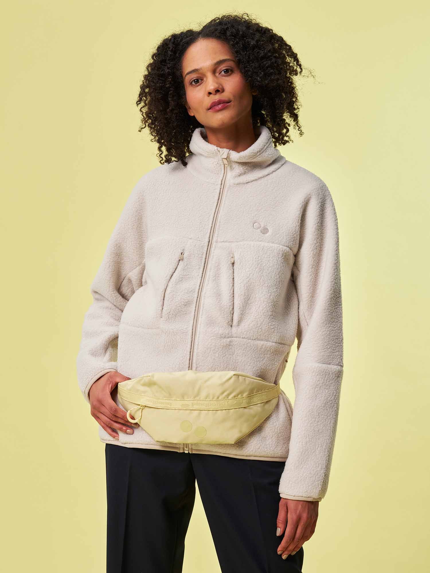 Brik von pinqpong wurde zu 100 % aus recycelten PET-Flaschen (100% recyceltes Polyester) hergstellt. Der Hip Bag überrascht mit 1,8 Liter Volumen, hat zusätzlich ein kleines Rückseitenfach und einen verstellbaren Hüftgurt.
