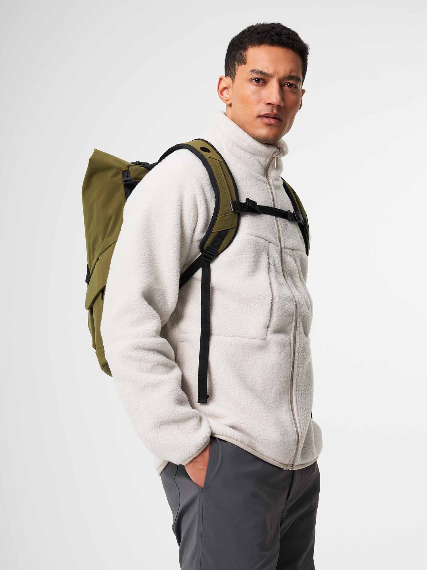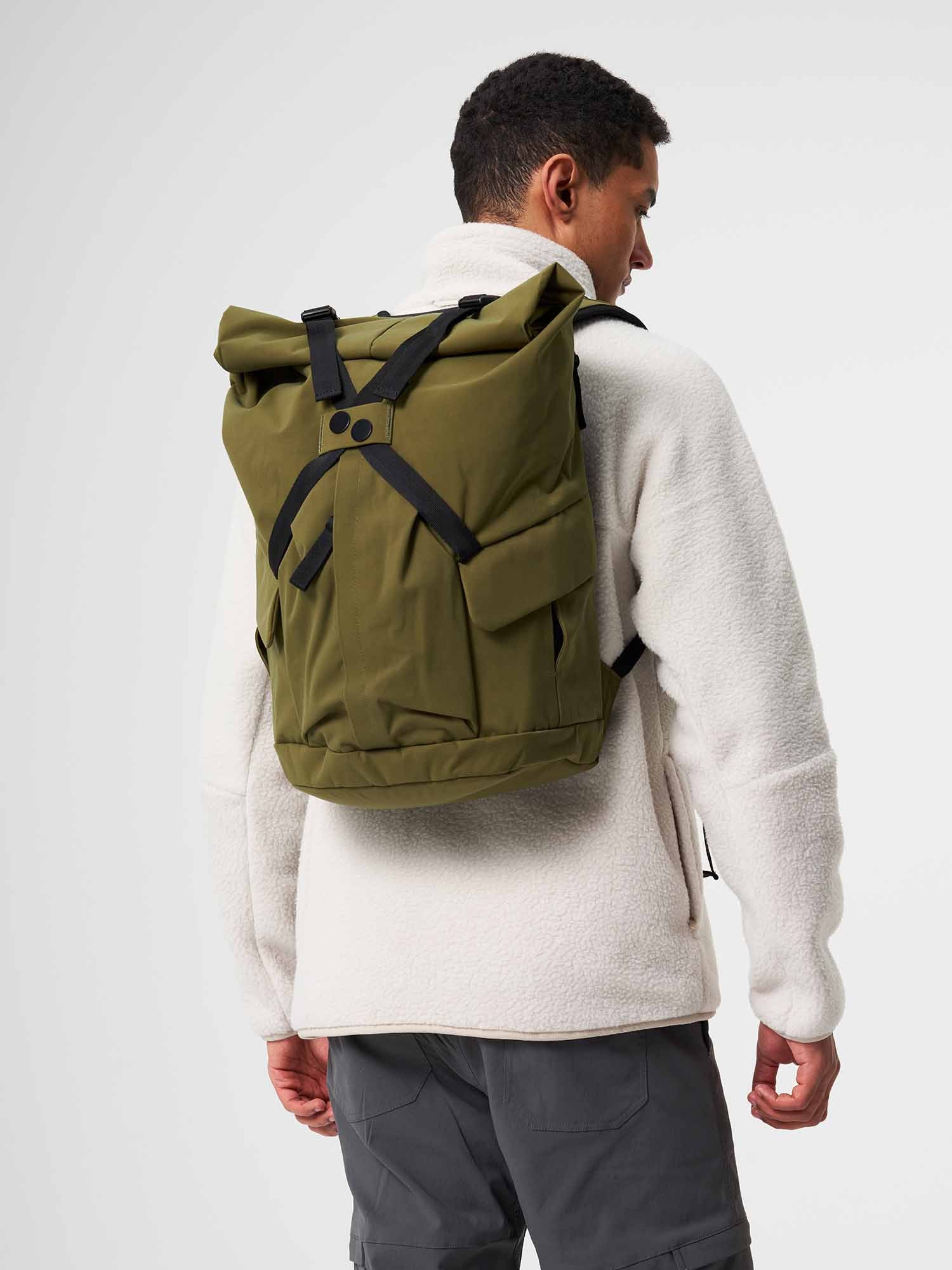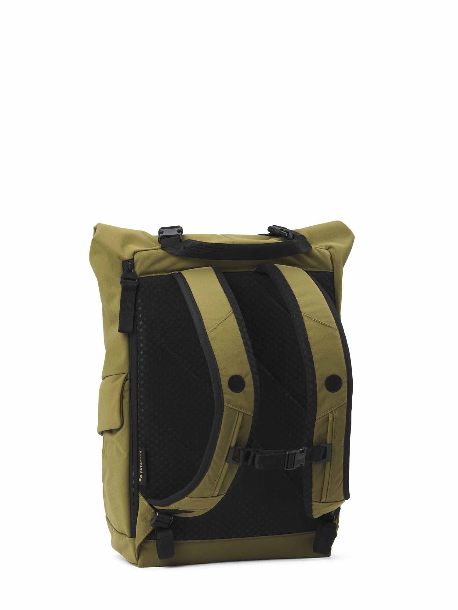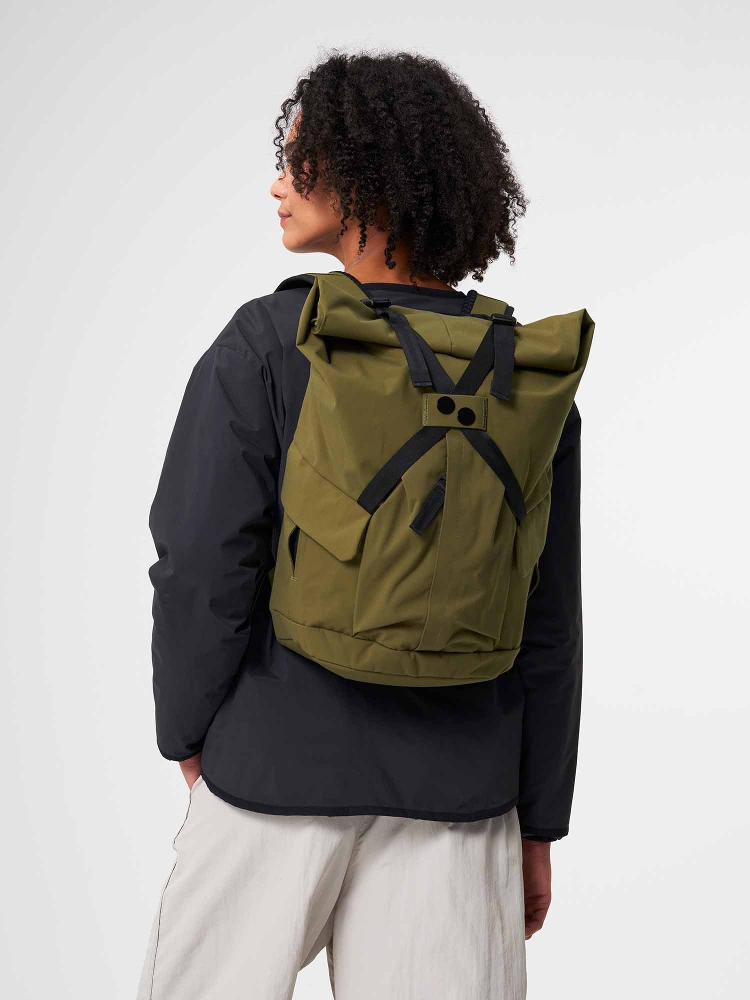 Kross von pinqponq wurde aus 100% recyceltem PET (100% Polyester recycelt) hergestellt. Der Rucksack hat ein Volumen von 20 Litern und ist auf 25 Liter erweiterbar. Er hat ein gepolstertes 15,6“ Laptopfach, 3 Außentaschen und ein gepolstertes aktmungsaktives Meshrückenteil.