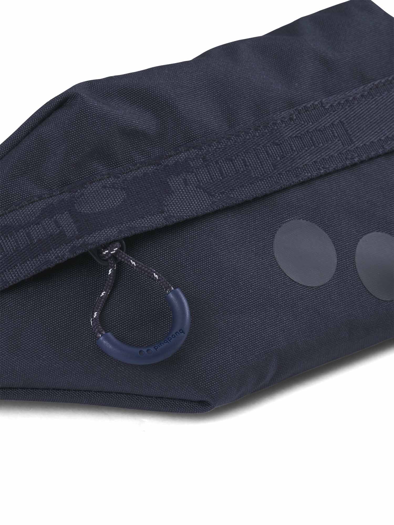 Nik von piqpong wurde zu 100 % aus recycelten PET-Flaschen (100% recyceltes Polyester) hergestellt. Die schmale Hip Bag ist ein dezentes, aber lässiges Accessoire, was genau für die wichtigsten Sachen ausreicht (ca. 1 Liter Volumen). Der Hüftgurt ist verstellbar bis zu einer maximalen Länge von 141cm.