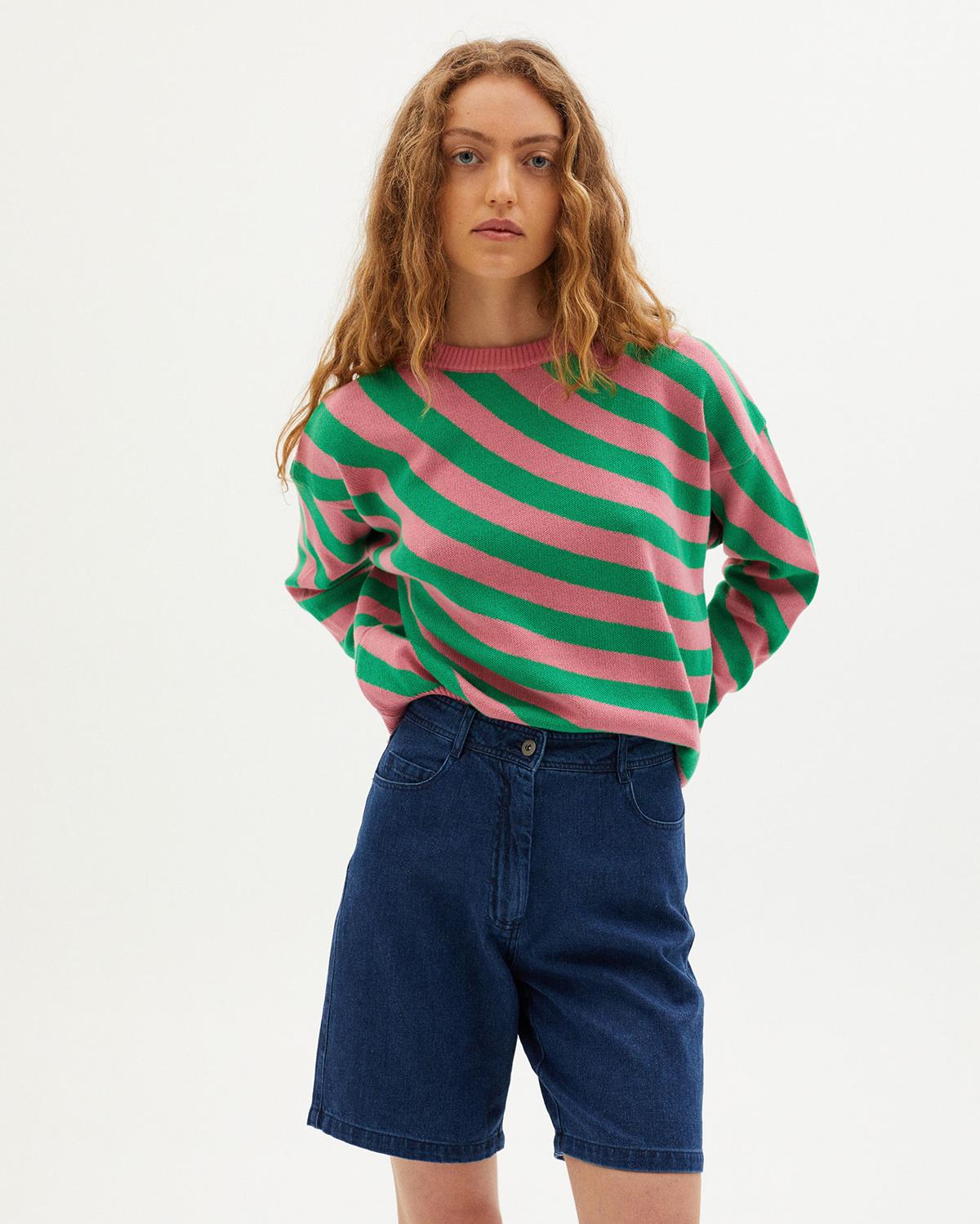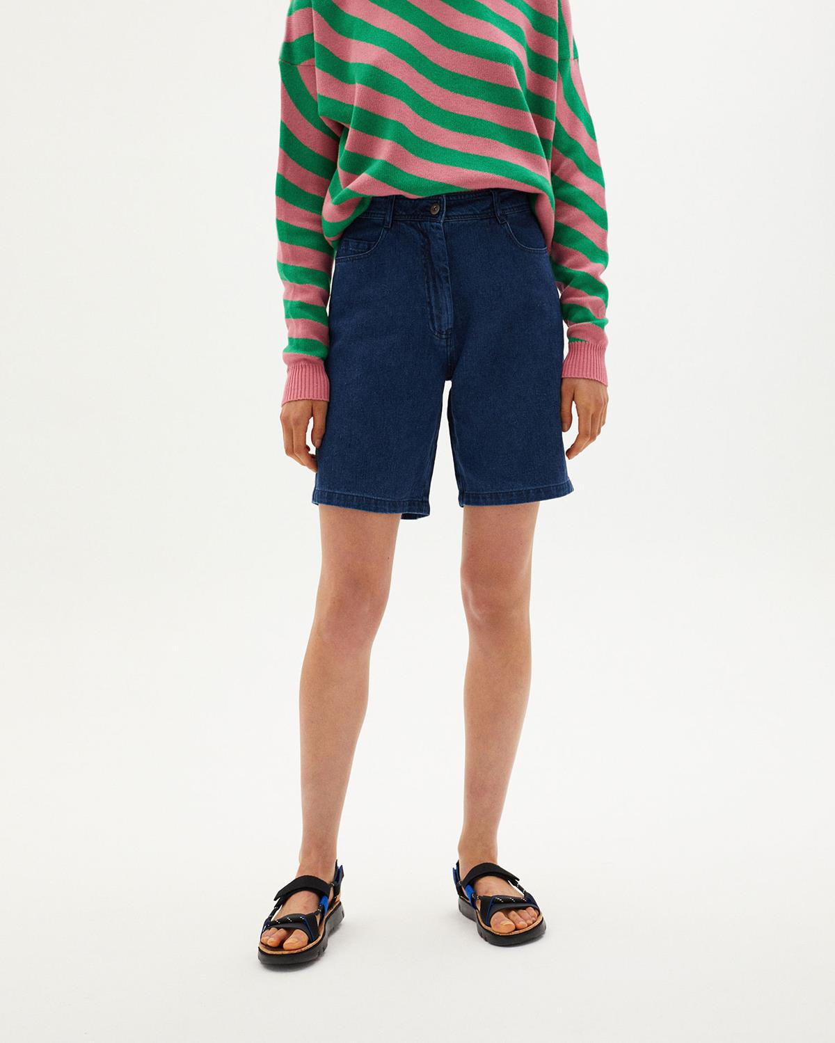 Die Shorts Jasmin Hemp denim von Thinking Mu ist eine klassiche Jeansshorts, jedoch aus 55% Hanf und 45% Bio-Baumwolle. Die Materialzusammensetzung machen die Hose super weich und angenehm zu tragen.