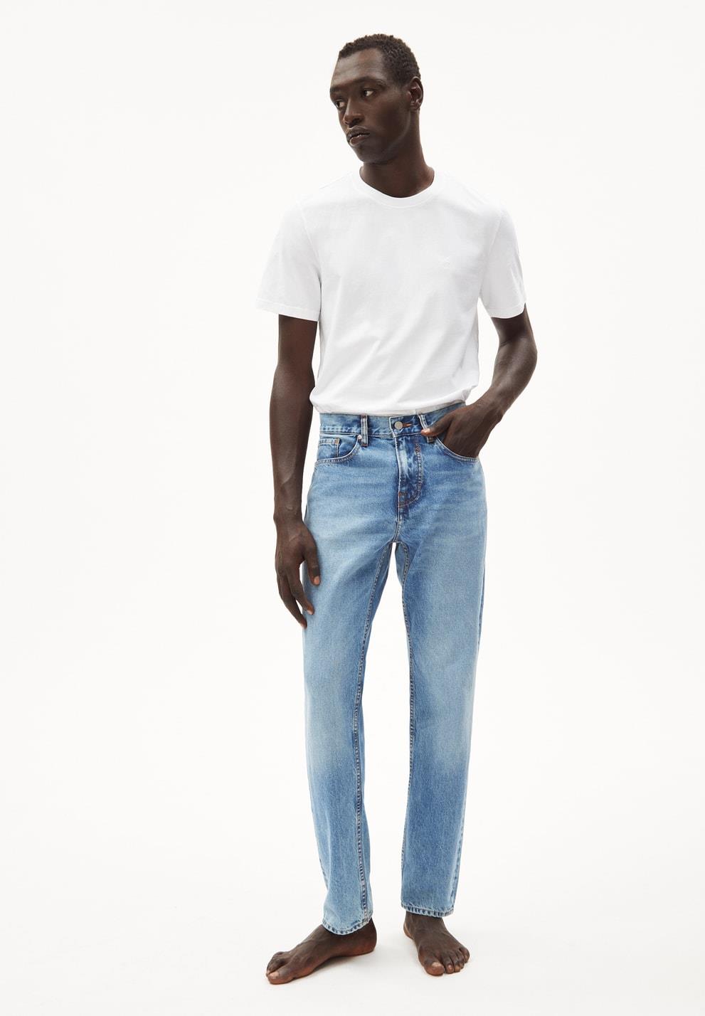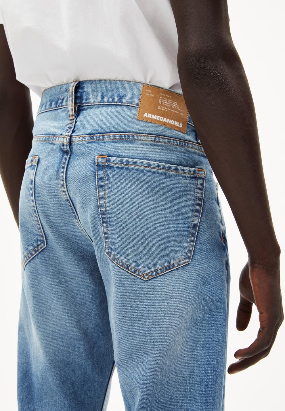 Die Jeans Dylaano von Armedangels ist gerade geschnitten, schlicht und lässt sich zu allem gut kombinieren. Die Hose besteht aus 100% Baumwolle (recycelt). Hinweis: Da die Baumwolle beim Tragen noch ein kleines bisschen nachgibt, raten wir dazu, die Jeans eher enger zu bestellen.