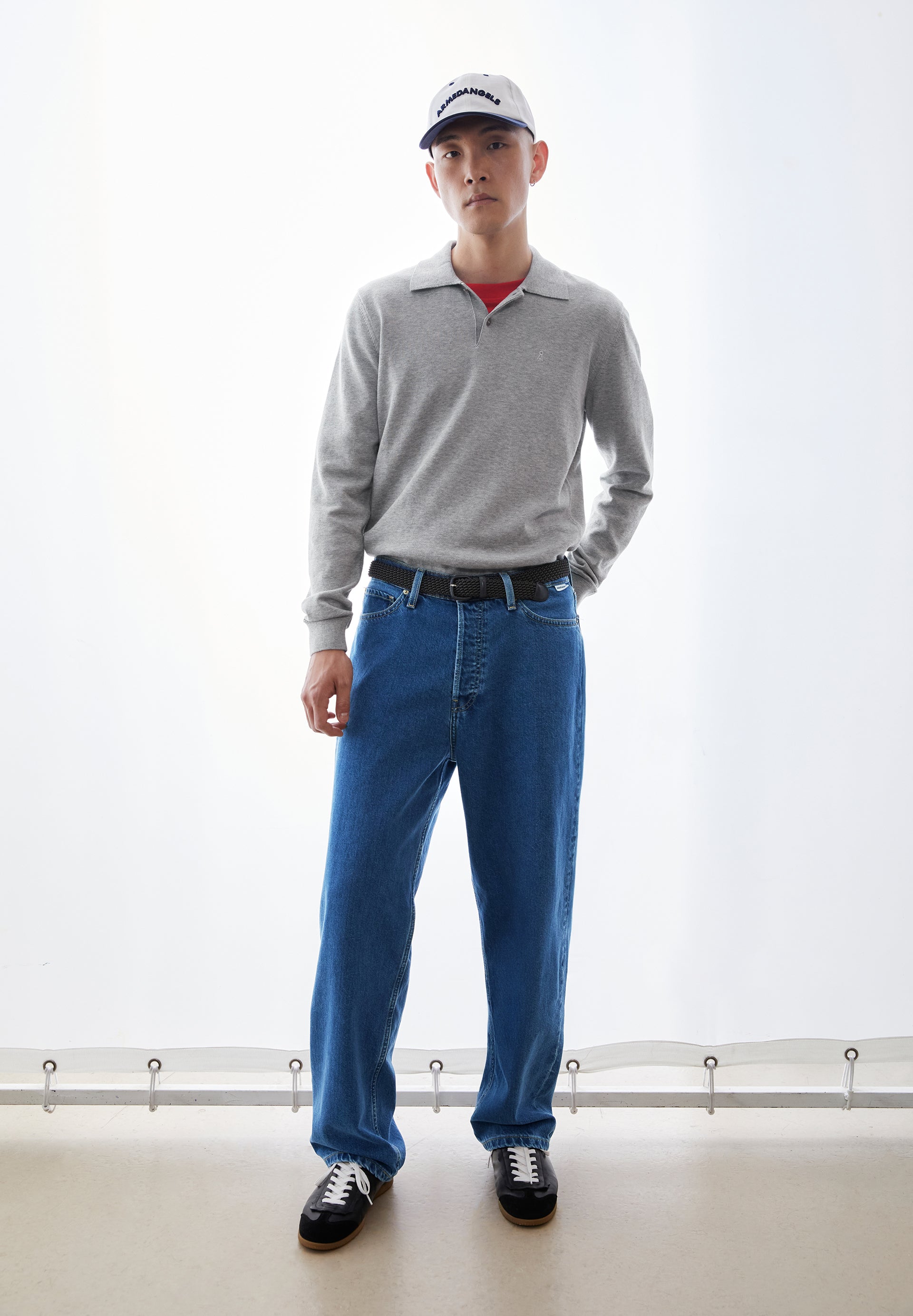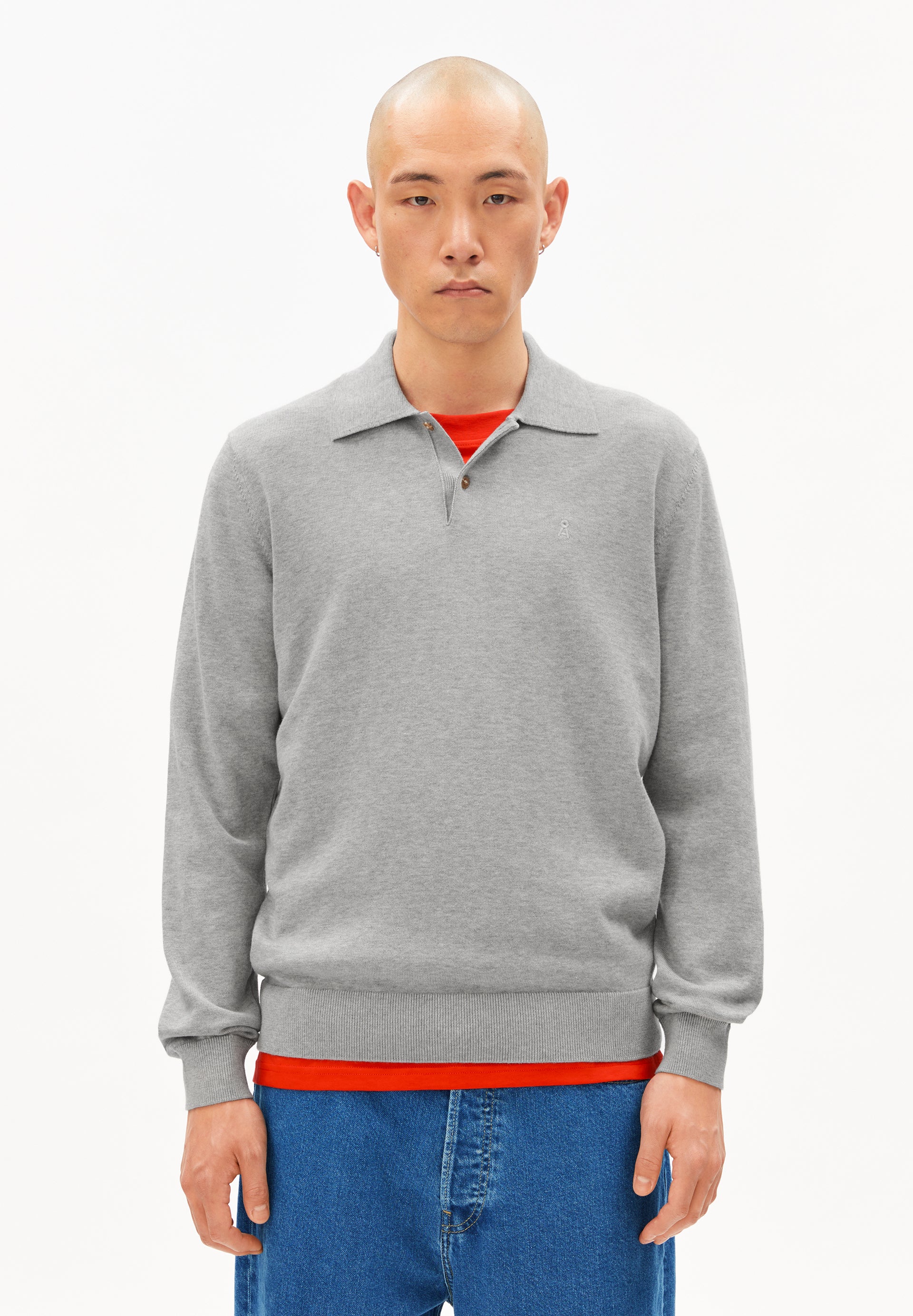 Longsleeve Knit Poloshirt von ARMEDANGELS in silver melange aus 100% Baumwolle (bio).