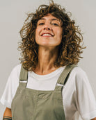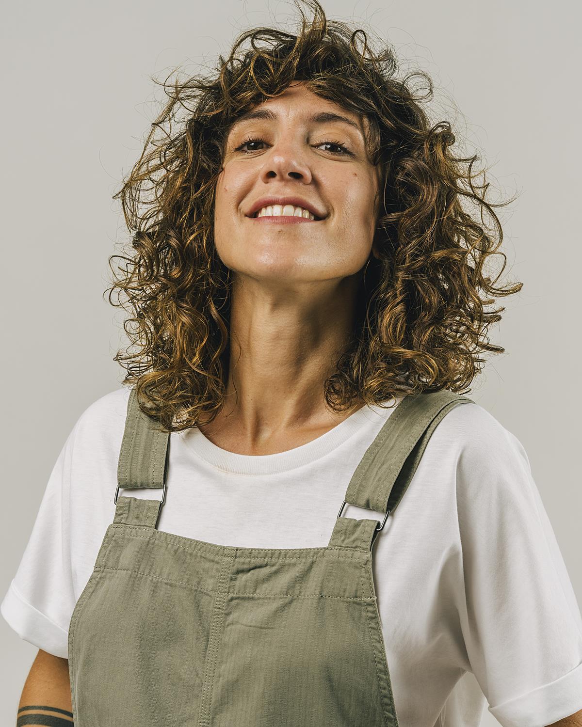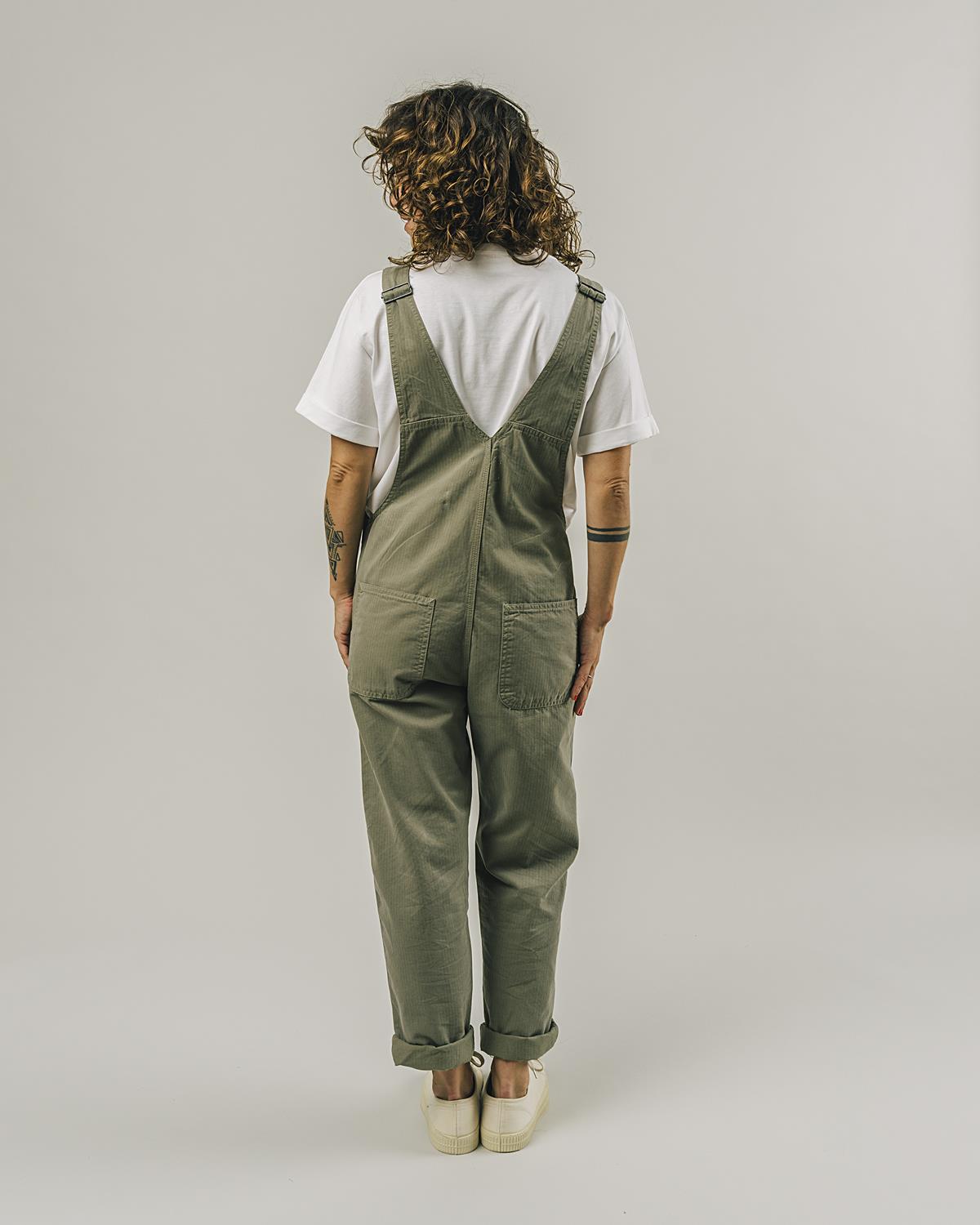 Der Herringbone Jumpsuit von Brava hat einen klassischen Schnitt mit praktischen Taschen. Die Latzhose besteht aus 100% Bio-Baumwolle.