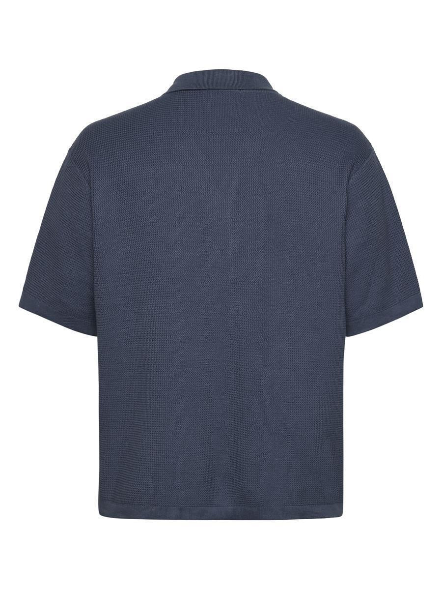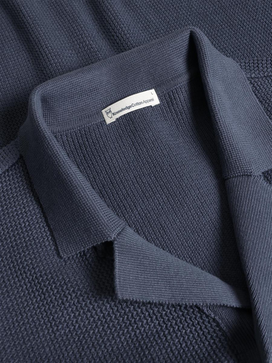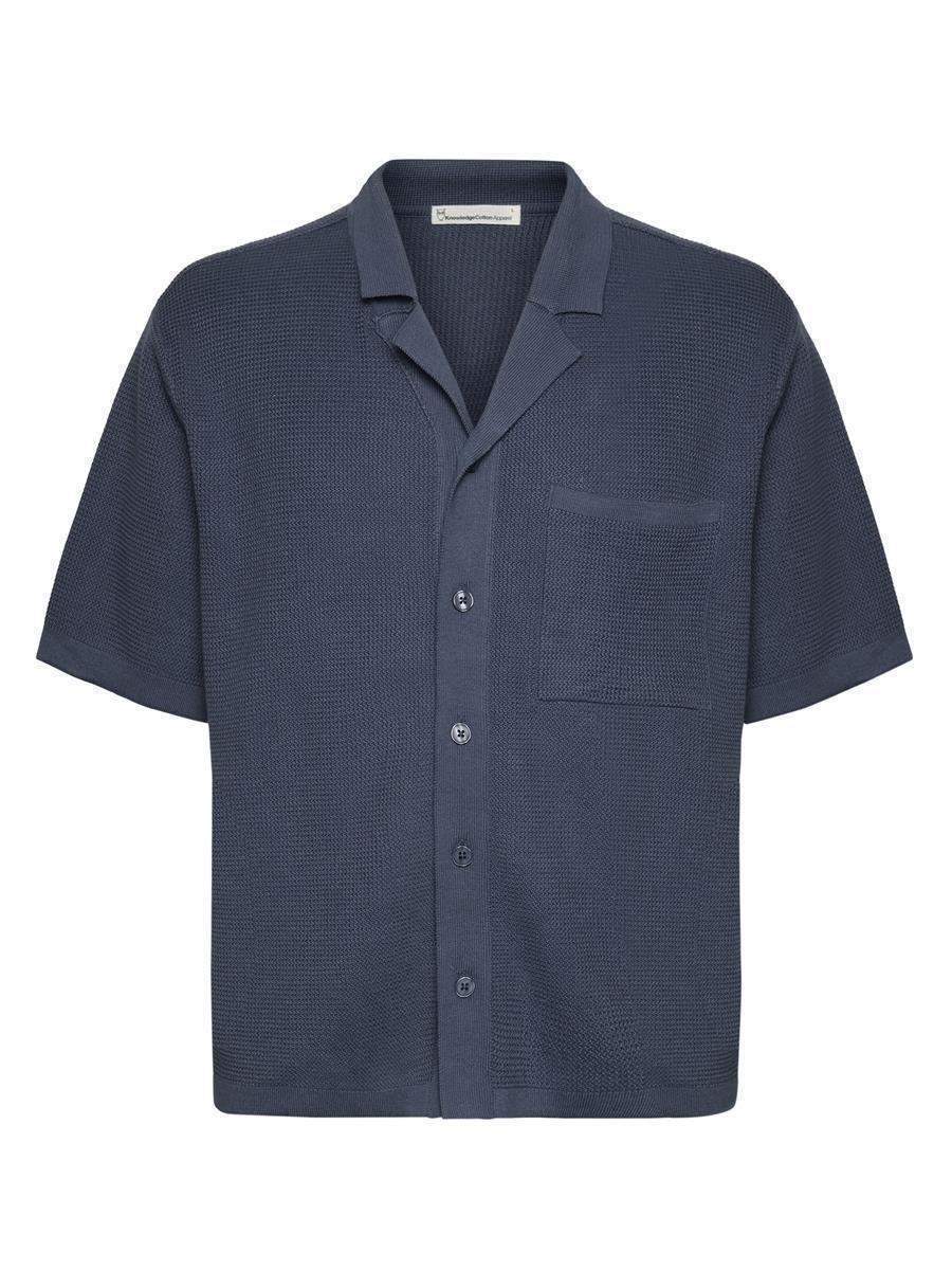 KNOWLEDGE COTTON APPAREL Boxy Short Sleeve Structured Knitted Shirt vintage indigo