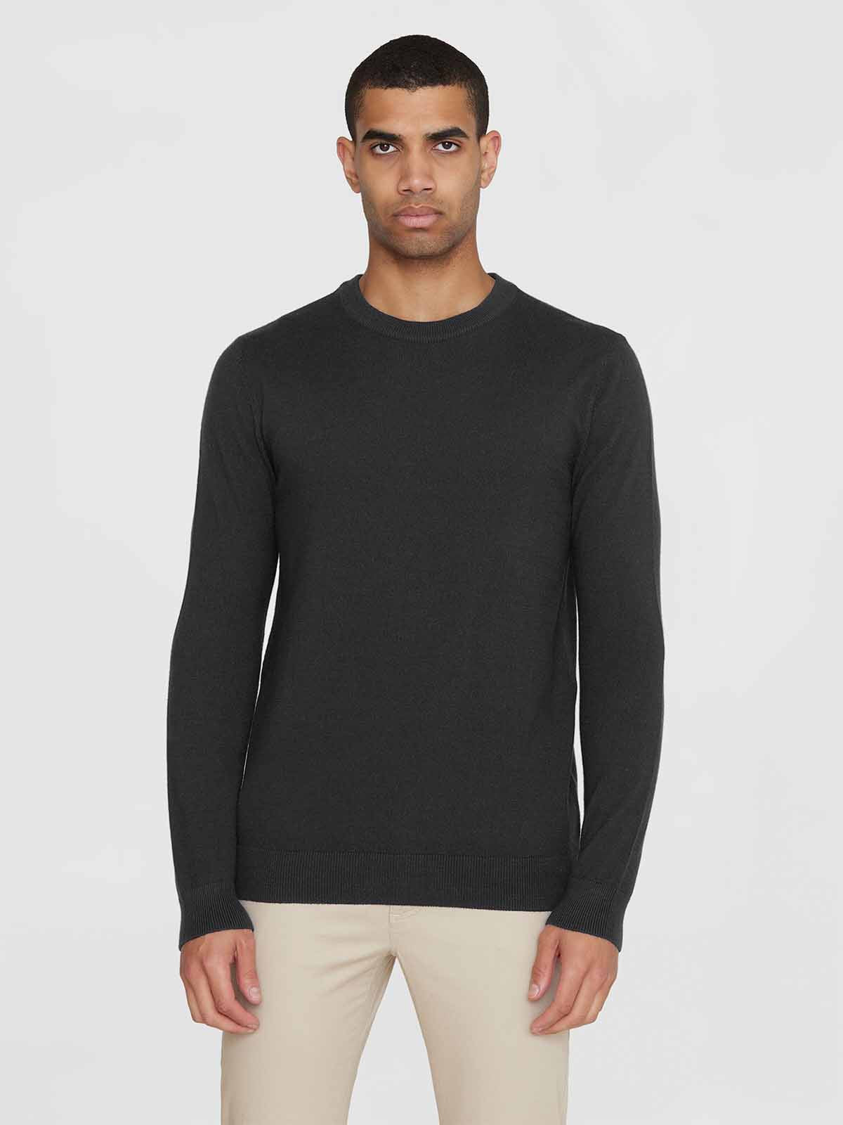 KNOWLEDGE COTTON APPAREL Karl Regular Merino Knit Crew Neck black jet