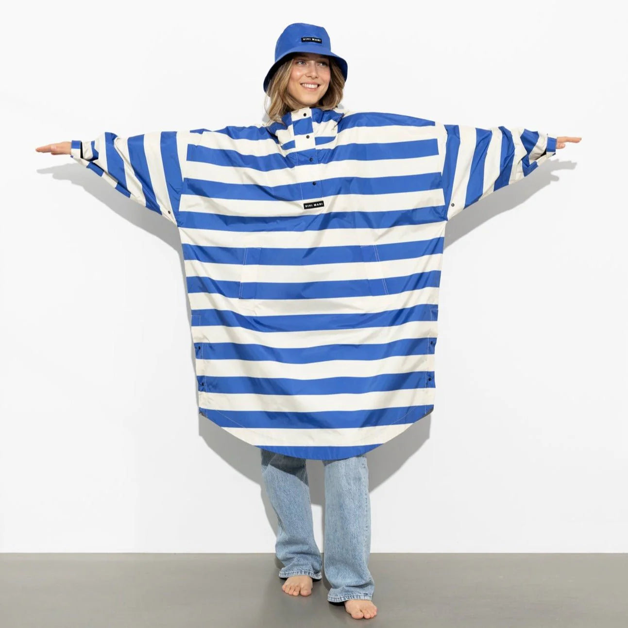 VIVI MARI Raincoat bold stripes - blue/sand onesize