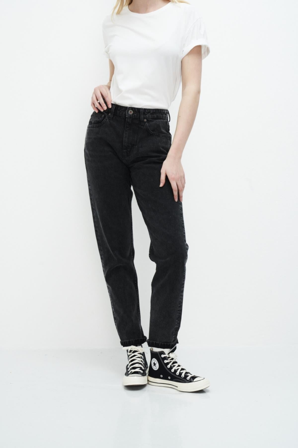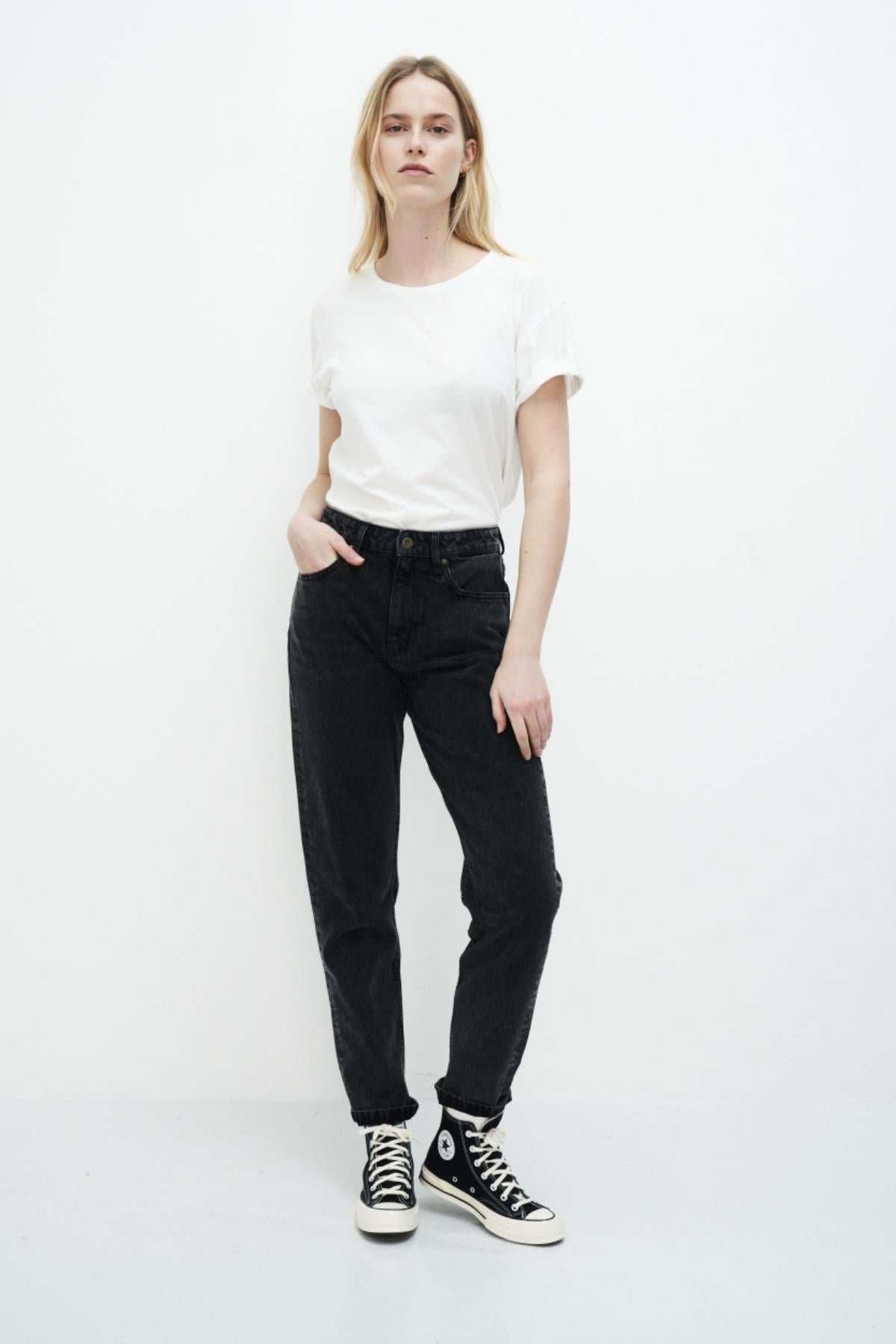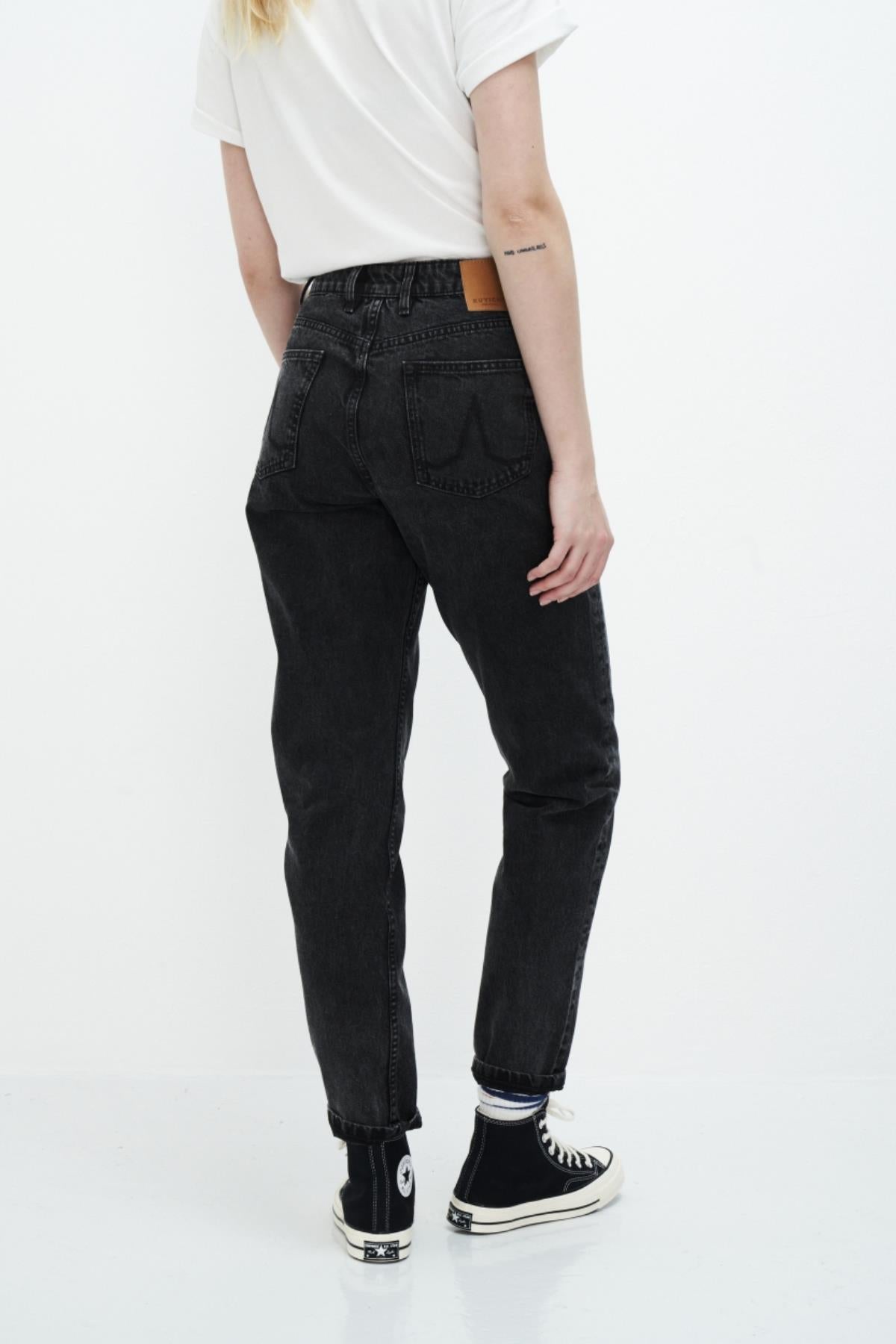 Nora von Kuyichi ist eine klassische Mom Jeans, mit Sitz in der Taille und loose- tapered Schnitt am Bein. Die Hose in dieser Waschung besteht zu 100% aus Bio-Baumwolle.