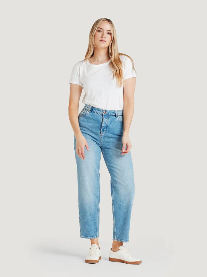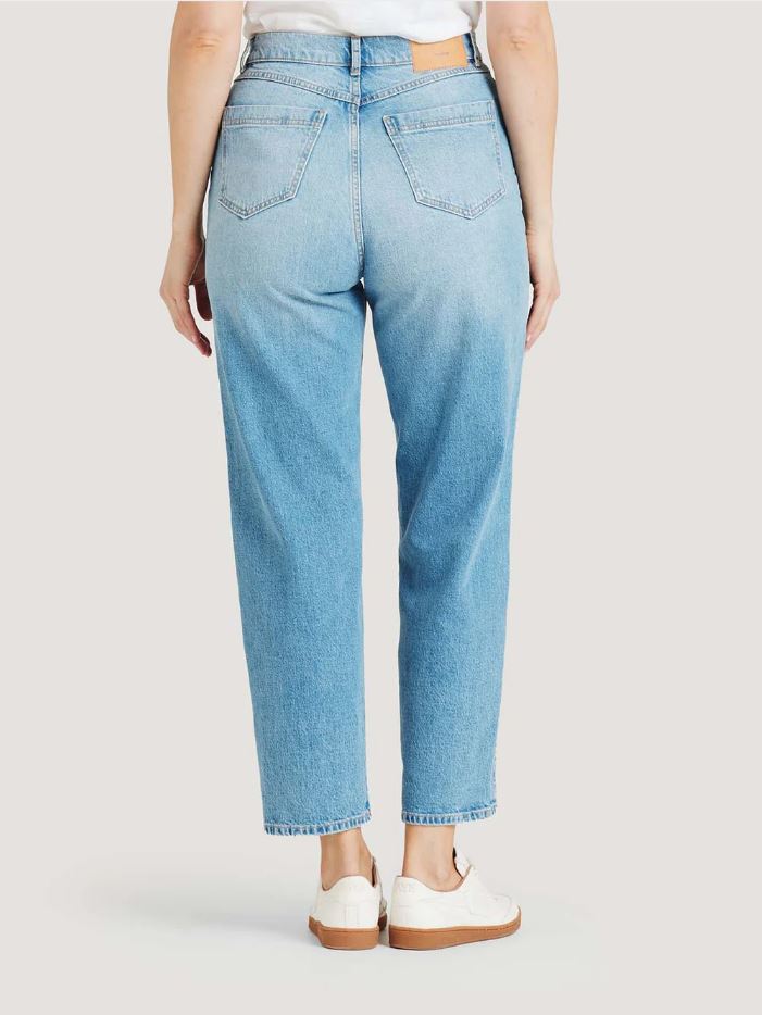 Boyfriend Jeans von Thought sitzt mittelhoch, hat ein eher locker sitzendes Bein und ist knöchellang. Die Hose besteht aus 99% Baumwolle (bio) und 1% Elasthan.
