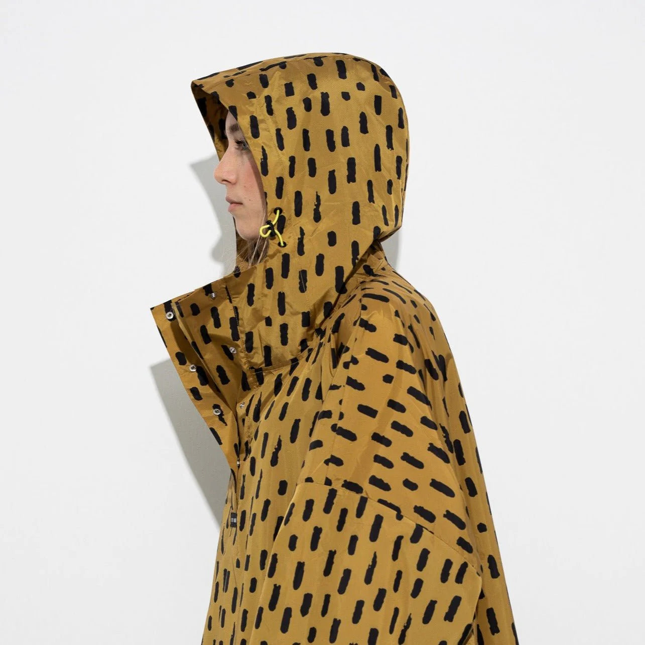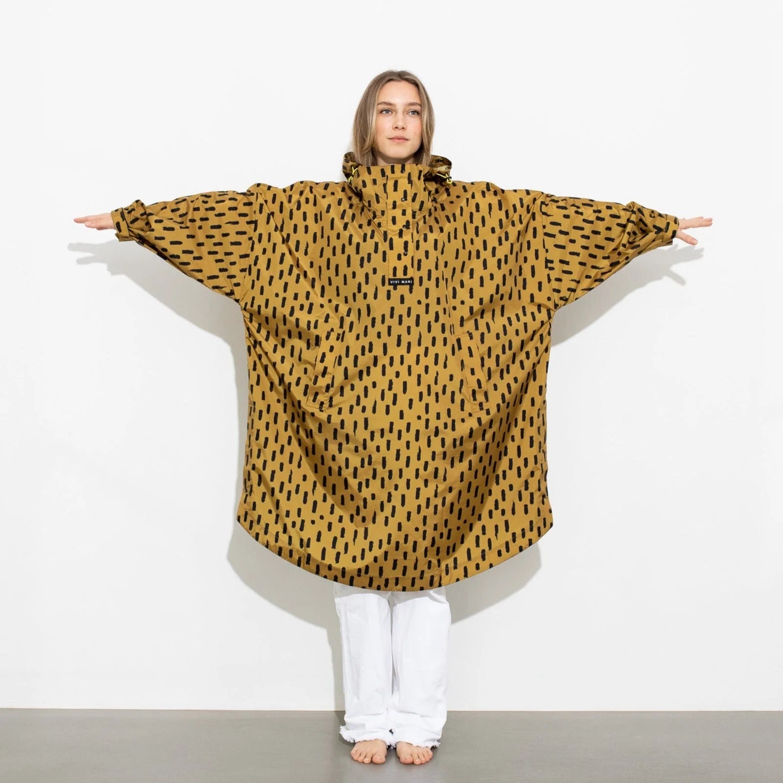 Mit dem urbanen Raincoat in oversize Passform von VIVI MARI machst Du das Beste aus verregneten Tagen. Der Raincoat besteht aus recycelten Rohstoffen und ist wasserdicht. Das Cape schützt Dich vor Nässe und kann an kalten Tagen flexibel auch über einer warmen Winterjacke getragen werden. Mach Dich wetterfest: Kapuze mit elastischem Band, Regenschutzeinsatz mit Knopfleiste am Hals, Klettverschluss Manschetten an den Ärmeln und Taschen für deine Hände. Dank oversize Passform und abgerundetem Saum ist der Raincoat auch auf deinem Fahrrad ein perfekter Begleiter. Material: 100% recyceltes Polyester Den Raincoat gibt es nur in einer Einheitsgröße, das Model ist 173 cm groß.