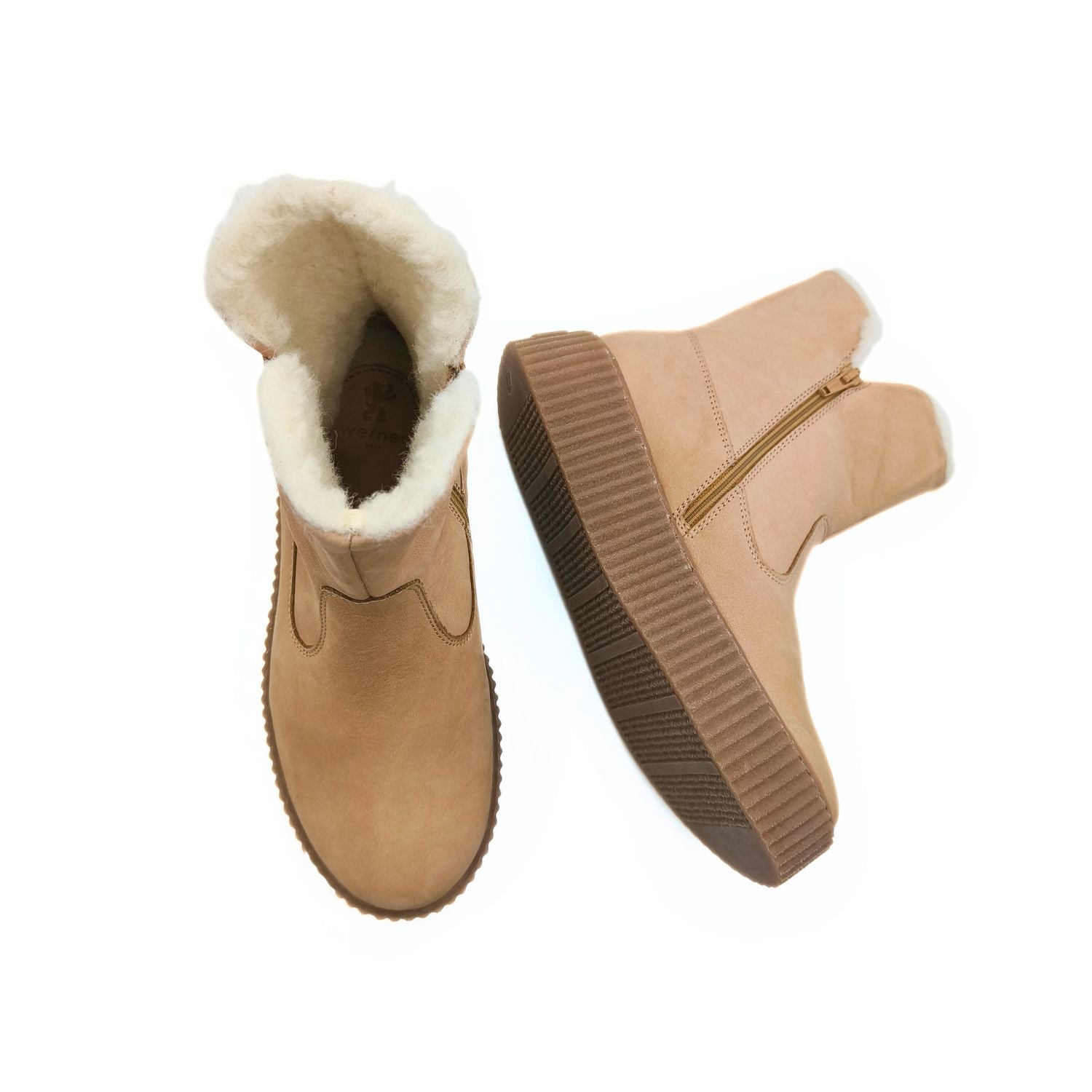 Der Winterboot Polarfuchs von Werner bietet Wärme, Komfort und Nachhaltigkeit in einem. Gefertigt aus Bio-Rindsleder (kbT) und ausgestattet mit 100 % Schurwollfutter, hält er die Füße zuverlässig warm. Der praktische Reißverschluss an der Innenseite sorgt für leichtes An- und Ausziehen. Mit normaler Weite sitzt der Stiefel bequem und alltagstauglich. Gefertigt wird er fair in Europa (Rumänien) unter schadstoffreduzierten Bedingungen.